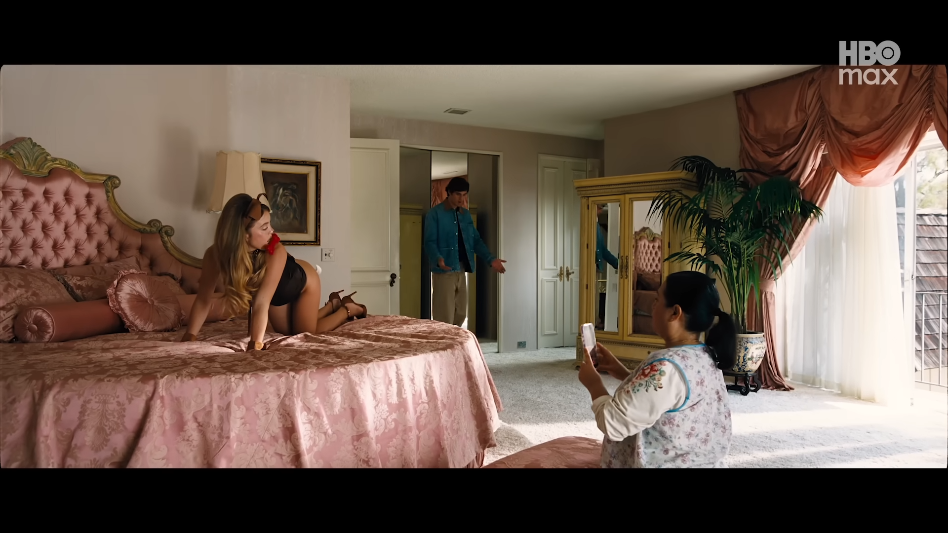 Creator Sam Levinson had recently revealed (with photos) where the main group of former high school friends are now as young adults with the time jump: Starring addict Rue (Zendaya) is south of the border in Mexico and in debt to drug dealer Laurie (Martha Kelly); Sydney Sweeney‘s unhappy Cassie and Jacob Elordi‘s Nate are engaged and living in the suburbs, and eventually get married; Hunter Schafer‘s Jules is in art school; Alexa Demi’s Maddie is working at a Hollywood talent agency; and Maude Apatow‘s Lexi is working as an assistant to a showrunner played by new castmember Sharon Stone.