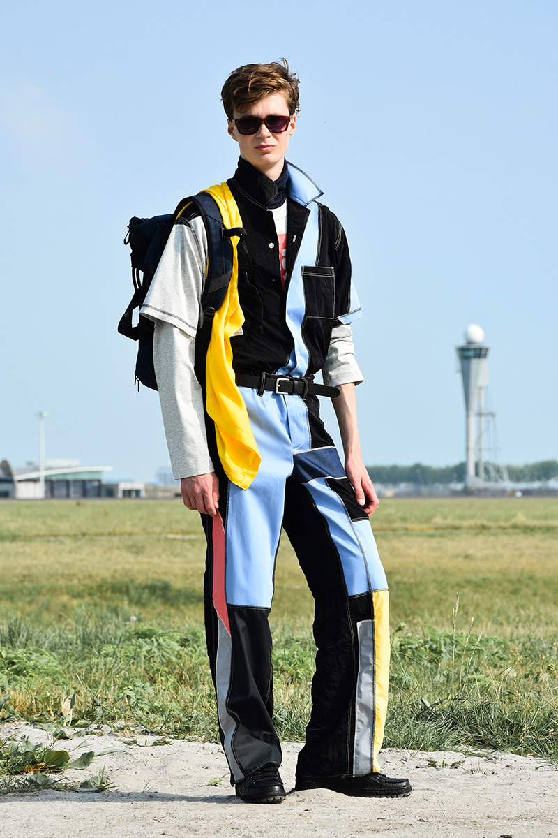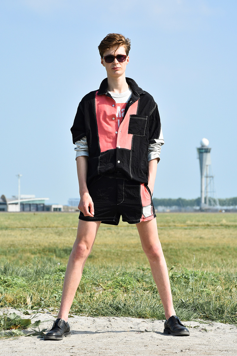 “The Spring/Summer 2019 menswear collection is about ‘being a tourist in your own city’. Schepers Bosman paints an image of a big city, with unknown, undiscovered peripheral areas. From a modern escapism, they gather exotic elements from their surroundings in Amsterdam Nieuw-West.