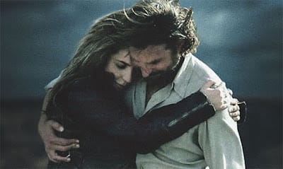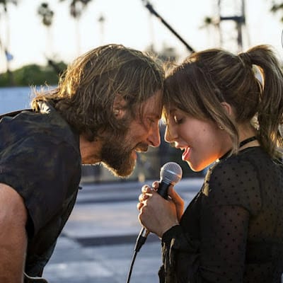 Gagita opens the film’s trailer with musician Jackson Maine (Bradley Cooper) performing at an outdoor gig.