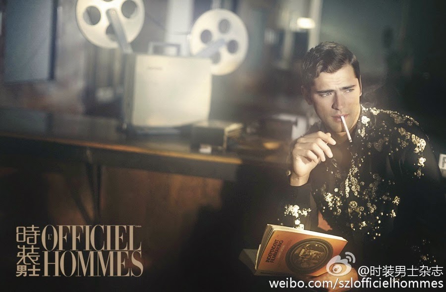 “Sean O’Pry lands another cover with the latest issue of L’Officiel Hommes China. The American model lends his classic good looks to a spread inspired by old Hollywood. Serving a timeless glamour and masculine elegance, Sean is captured in images with a wardrobe that features iconic pieces such as the leather biker jacket and printed dress shirt.” – The Fashionisto