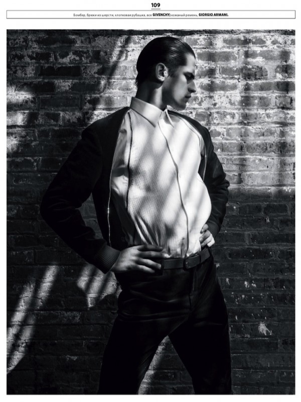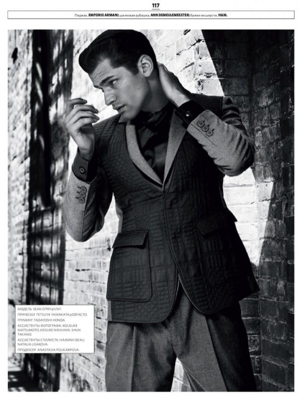 Fall Dressing–Leading model Sean O’Pry graces the pages of the latest issue of GQ Style Russia, appearing in a series of striking pictures lensed by photographer Taka Mayumi. After posing for the magazine’s cover, Sean sports some of the fall season’s best looks, assembled by GQ’s Ekaterina Melnikova, including designs of Dolce & Gabbana, Gucci, Giorgio Armani and others. With slicked hair back or sporting a 50′s inspired hairstyle, Sean exudes style and charisma in pensive shots or more dynamics portraits, providing his innate charm and charisma. / Hair by Tetsuya Yamakata. Makeup by Tadayushi Honda. Courtesy of – thefashionisto.com