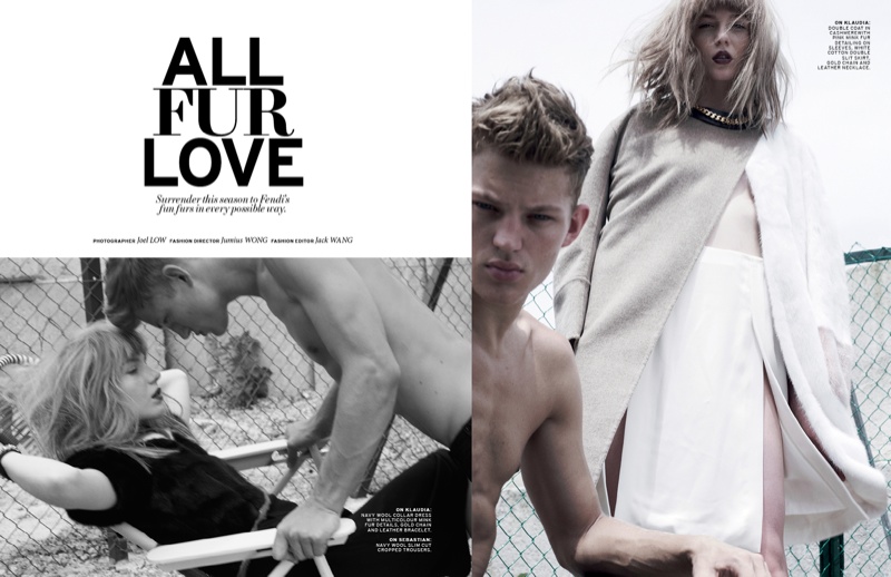 All Fur Love–Photographed for the September issue of L’Officiel Singapore, AVE Management model Sebastian Sauve joins Klaudia Pulik for a Fendi fall 2013 feature. Styled by Jumius Wong and Jack Wang, the two easily capture the luxurious appeal of Fendi’s signature furs. / Makeup by Linsey Li. Hair by Ken Hong. Courtesy of – thefashionisto.com