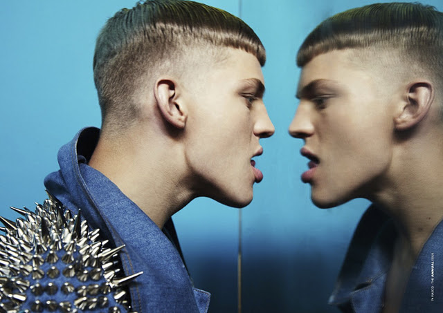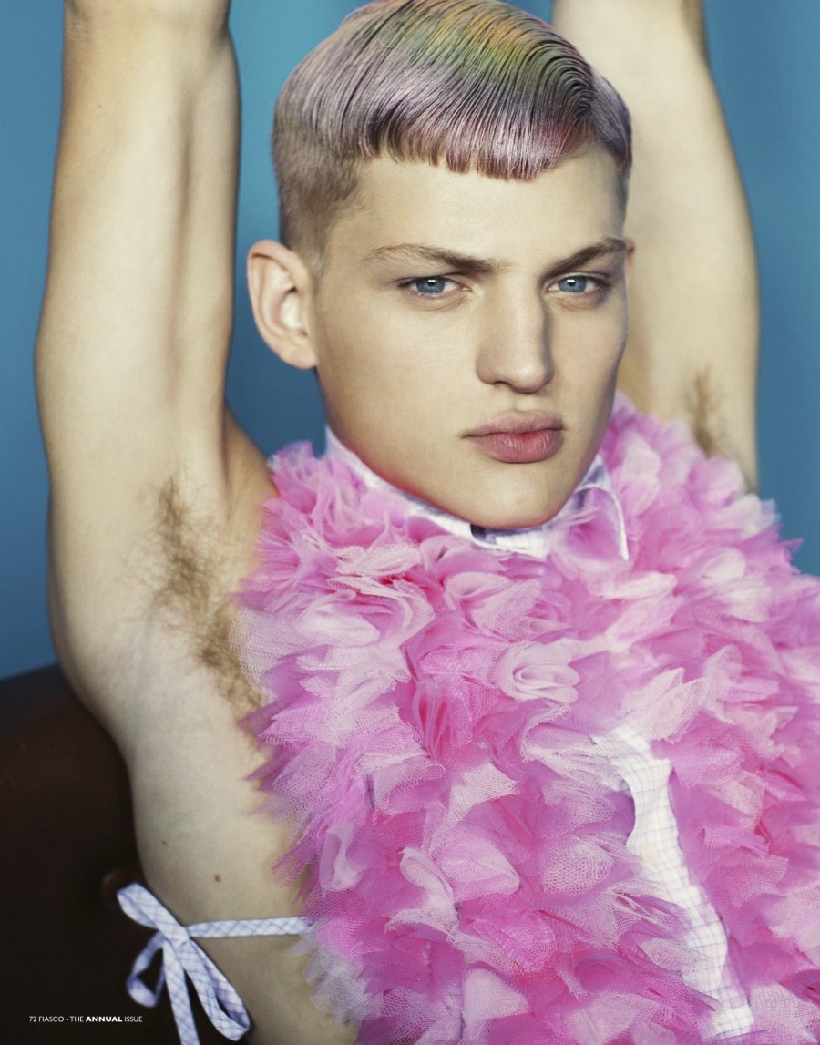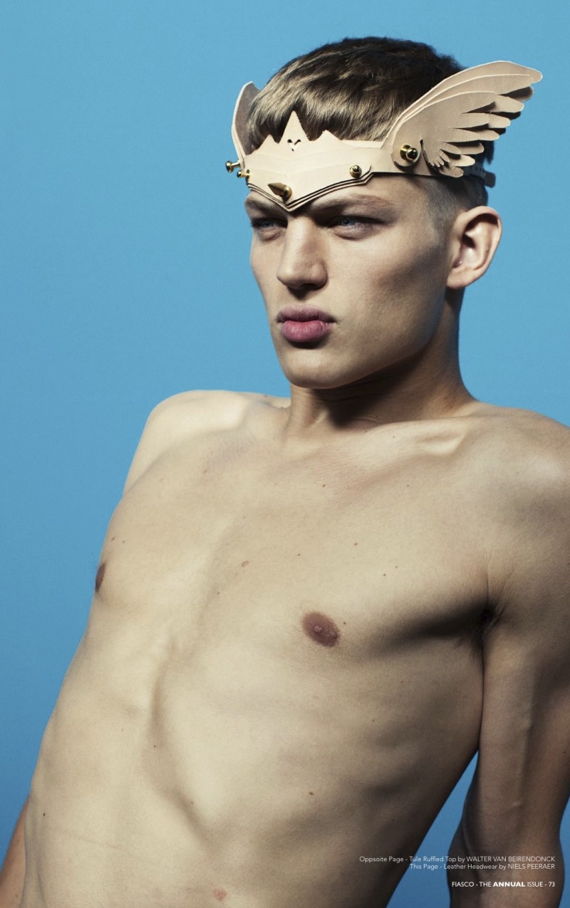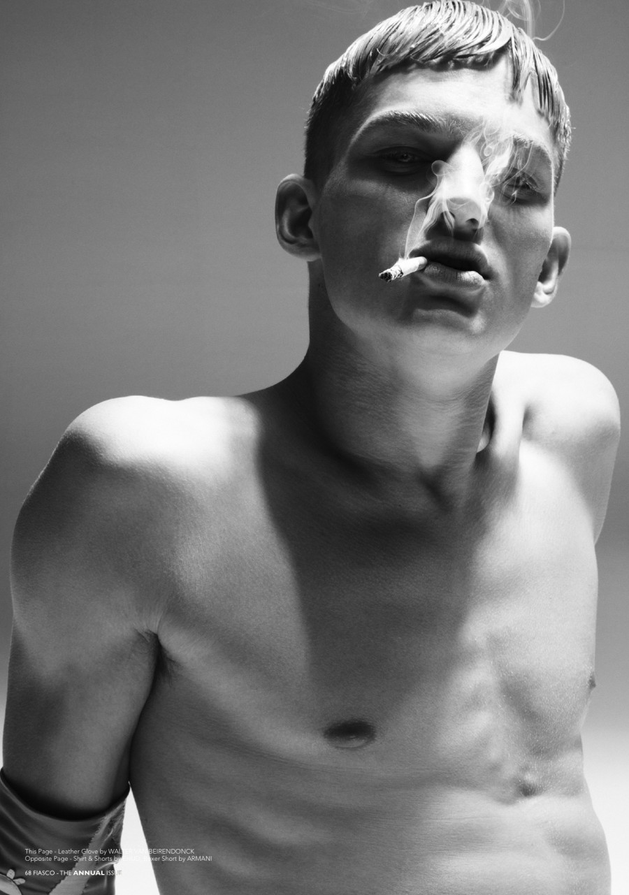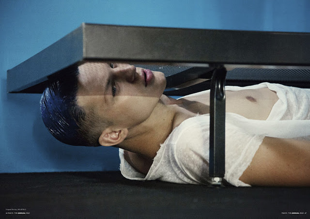 Petrovsky & Ramone capture Premier beauty Sebastian Sauvé in the story ‘Blue Room’ for the 2011 annual issue of Fiasco magazine. The editorial is styled by Ferry Van Der Nat with hair by Hester Wernert and grooming by Katinka Gernant. Courtesy of – Homotography