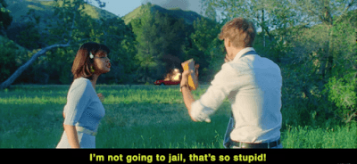 The hot blond guy meets Selena at a party and persuades her to sneak out, steal a car, drive to a remote green idyllic field, only to later find out they’re wanted for grand theft auto. Imagining being on their honeymoon phase, the plotline begins to implode leading up to a tantalizing finale.