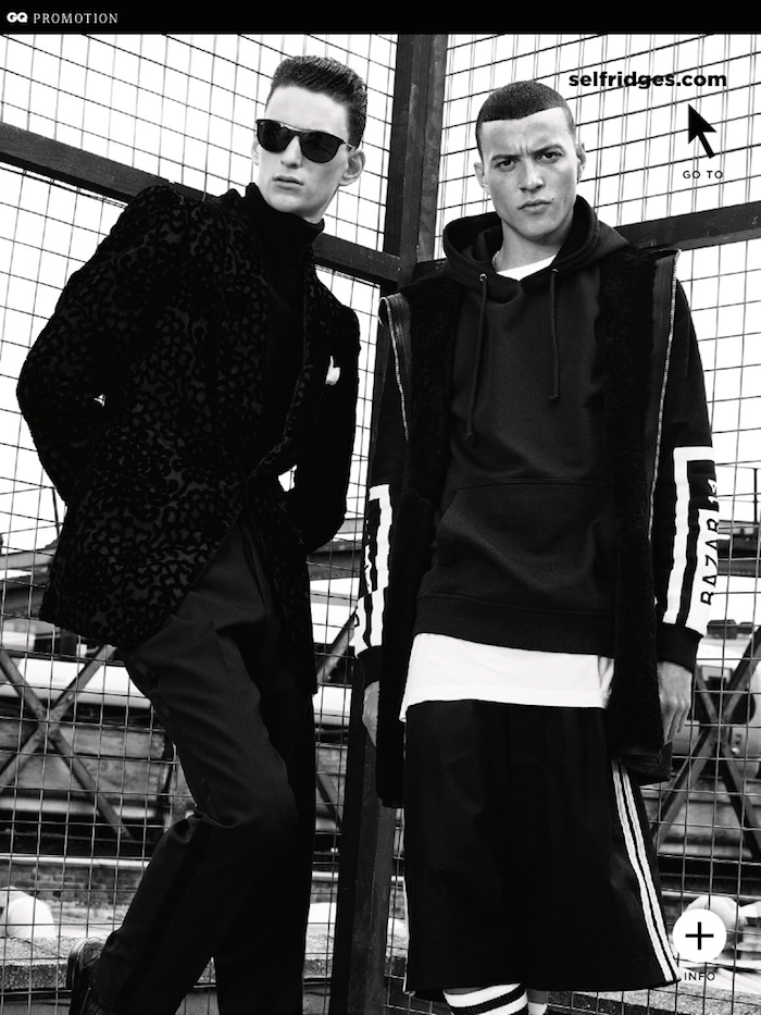 Fall Close-Up-GQ UK’s fall fashion supplement features an outdoor story that puts the spotlight on avant-garde fall looks that are currently available to purchase at Selfridges. Teaming up with the British luxury department store, the magazine taps models Felix Radford and Joseph to wear a selection of bold designs that combine a strong street-style aesthetic with high-end sartorial details. Outfitted in pieces from the likes of Givenchy, Maison Martin Margiela, Tom Ford and many more, the models are a vision of eye-catching modernity in textured tuxedo jackets, luxurious sporty designs and tailored ensembles, defining this way fall’s bold approach to dressing. Courtesy of – thefashionisto.com
