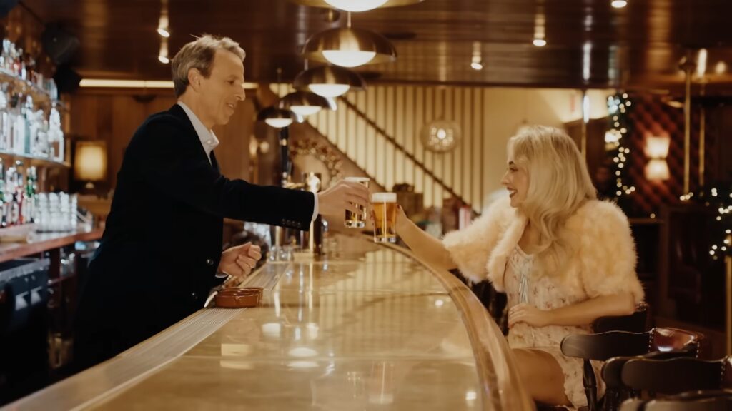 Seth Meyers teams with Sabrina Carpenter at NYC’s Ripple Room for a festive Day Drinking episode packed with holiday games.