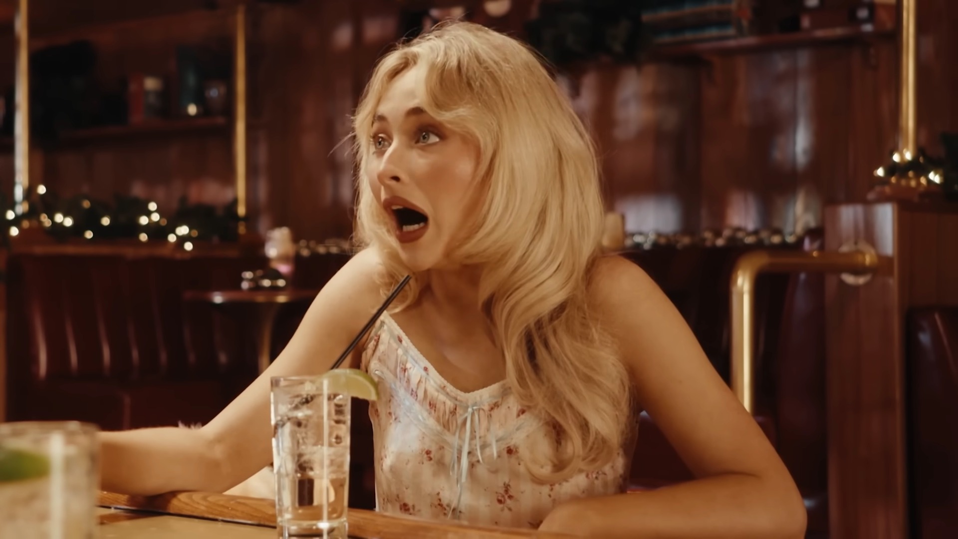 Seth Meyers and Sabrina Carpenter share giant cocktails in Day Drinking holiday episode