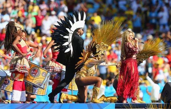 Shakira beats the stage for a live performance of her single Dare (La La La) at the World Cup 2014 closing ceremony. Ravish in red the Colombian mother is ‘in it’ performaing for the soccer fanatics…