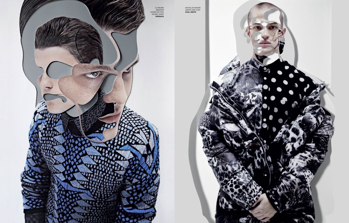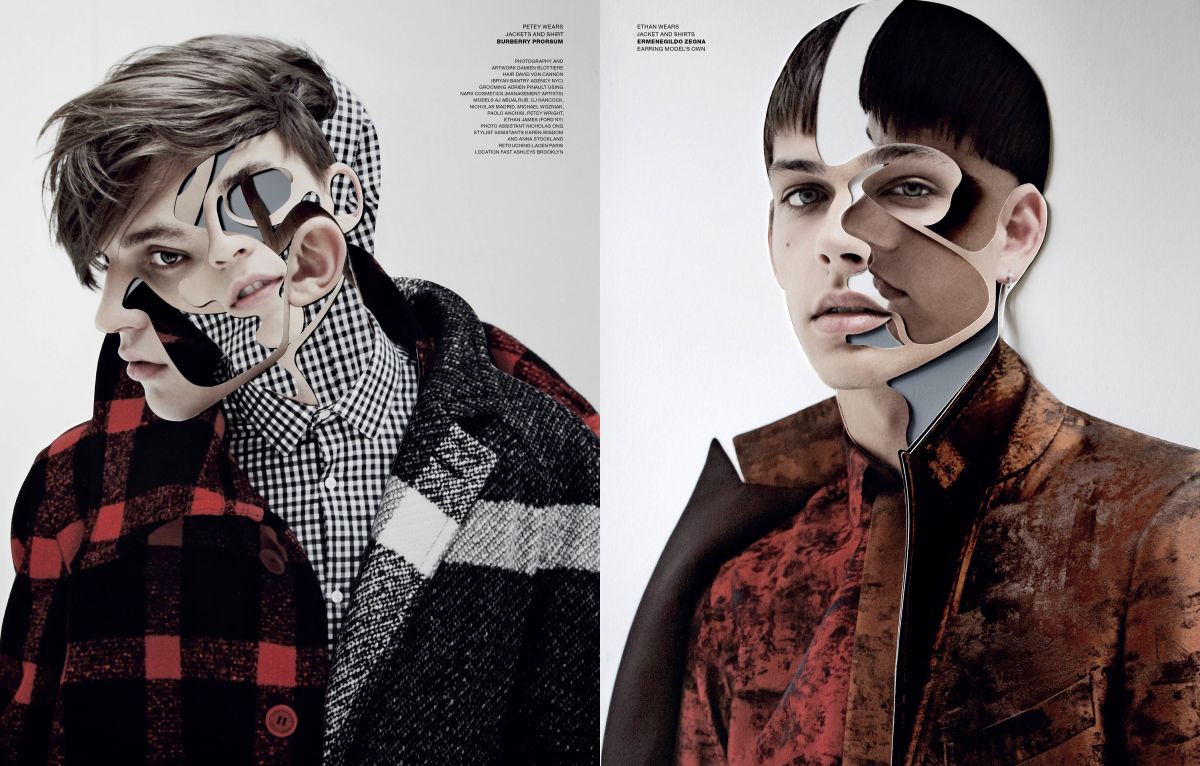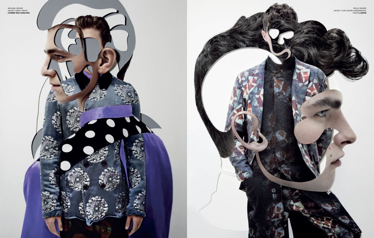 Damien Blottiere uses his signature splice photography to depict the 2020 decade for VMAN’s Decades issue. Tom Van Dorpe styles AJ Abualrub, CJ Hancock, Nicholas Madrid, Michael Wozniak, Paolo Anchisi, Petey Wright, and Ethan James in technical pieces from Lanvin, Comme des Garcons, and Burberry Prorsum. Courtesy of – hommemodel.blogspot.com