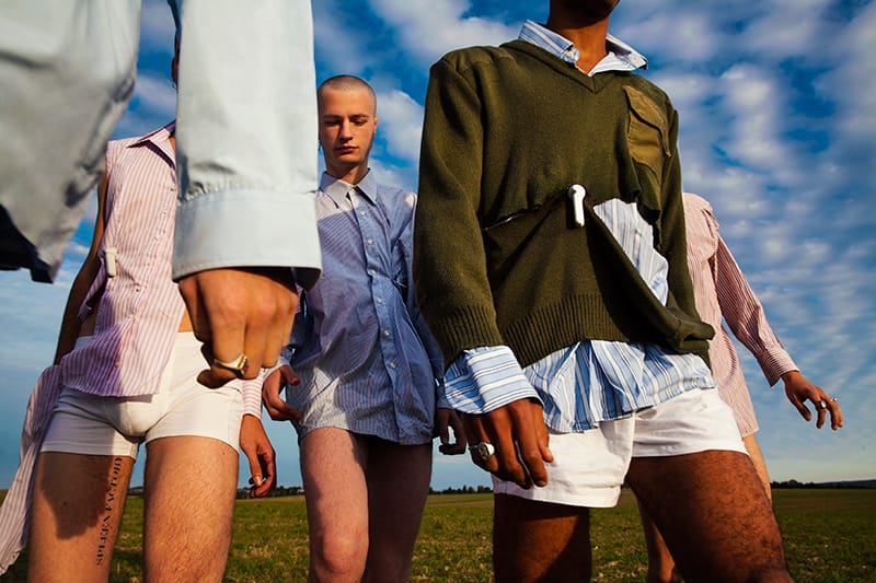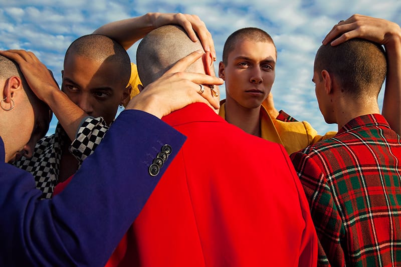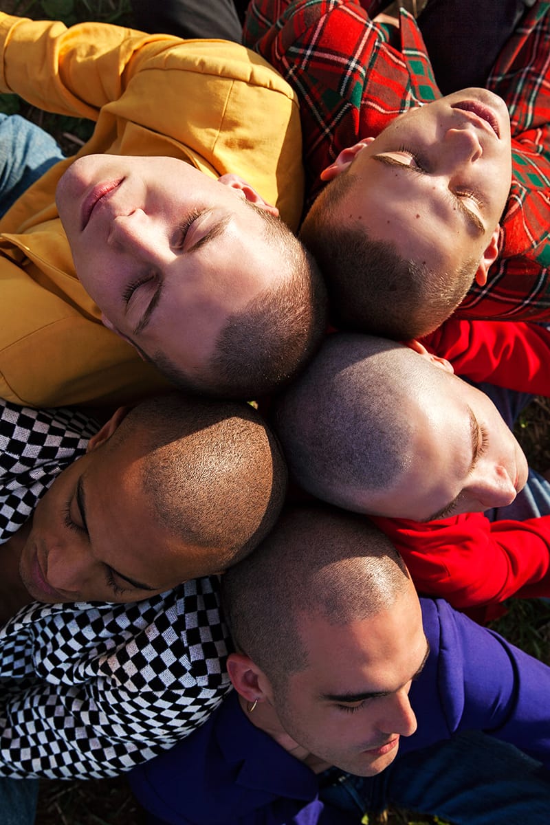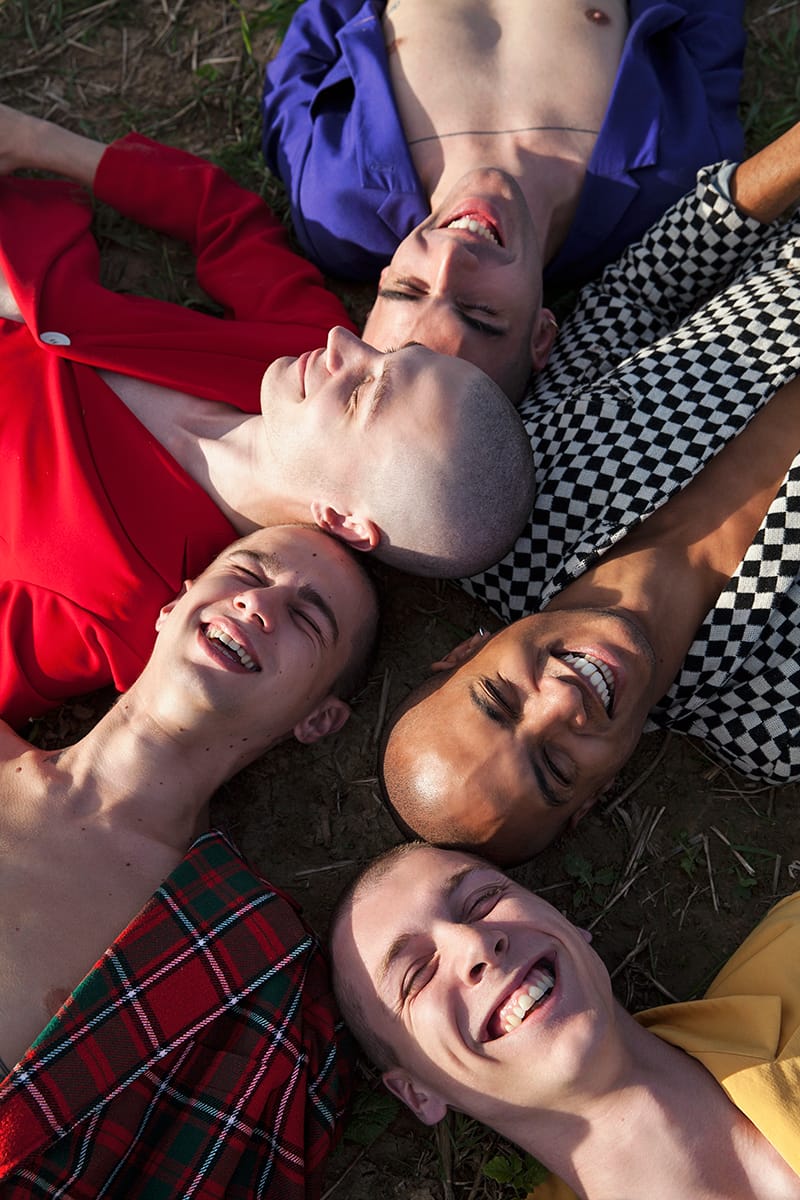 “Victor Weinsanto, Sylvain Lewis, Sylvain Claverson, Arnaud Fascione and Matéo Picard photographed and styled by Valentin Fabre with pieces from Spleen Factory, Korine, Caroline Grout and Véronique Fabre, in exclusive for Fucking Young! Online.” – FY Magazine.es