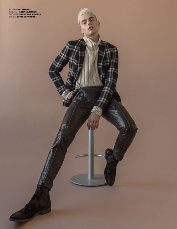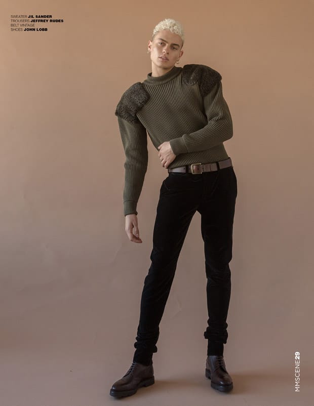 For the session Joel is wearing selected pieces from top brands such as Ralph Lauren, Tom Ford, John Lobb, John Varvatos, Jill Sander, Dolce & Gabanna, Jeffrey Rudes, Valentino, Bottega Veneta, Versace, Roberto Cavalli, Lacoste, Hermes, Louis Vuitton, Moncler, and Belstaff.” – Malemodelscene.net