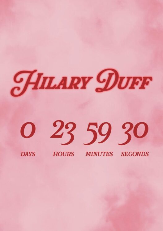 Miss Duff unleashes a countdown via her official website ahead of her long-awaited music comeback. The young pop legend and actress shares a link to her enigmatic clock, which ticks down to Monday, November 3 at 2 PM ET / 11 AM PT. Fans speculate the timer signals a new single or album drop, marking her first major release in nearly a decade.