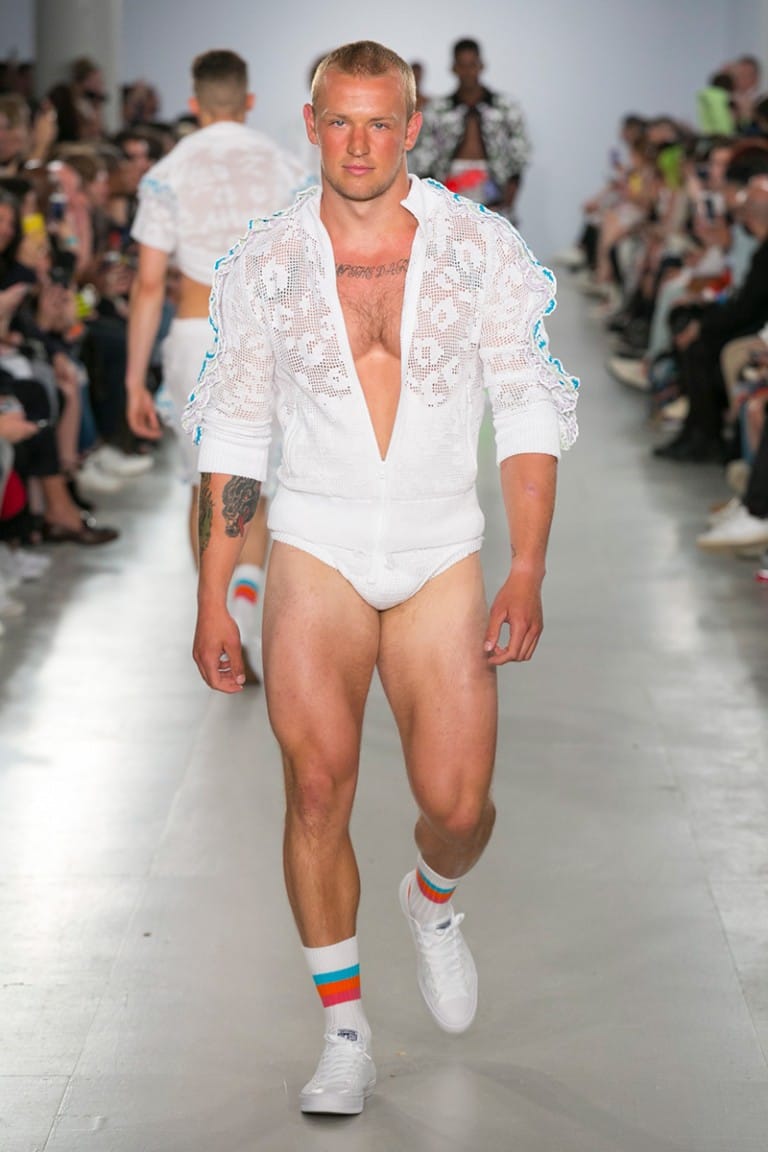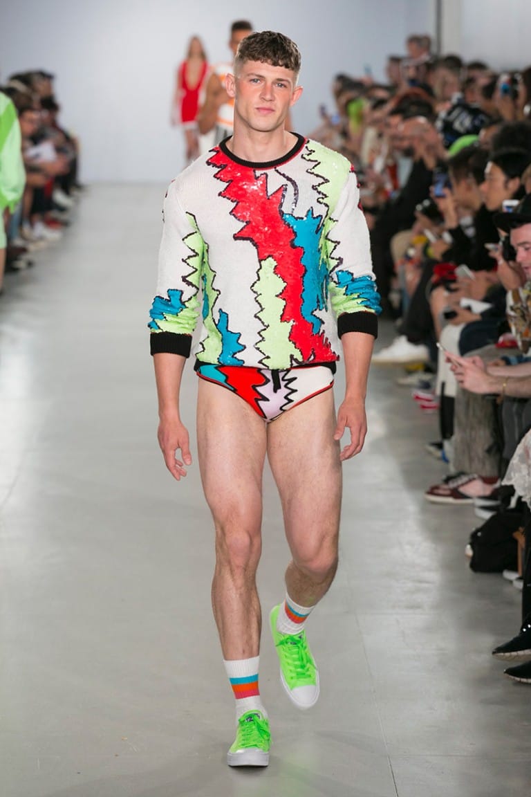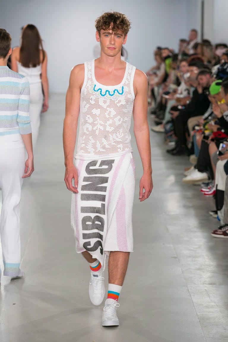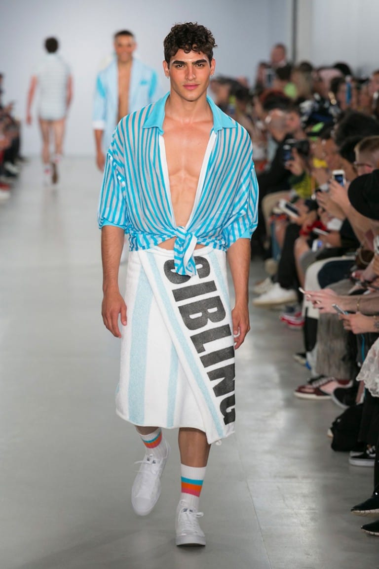 “There is only one show where the models smile as much as the front row and that’s Sibling. Mariah Carey’s ‘Fantasy’ played to a sexy mirage of models, glistening as if they just emerged from the California sea. Rocking sequin speedos and luxurious yarns, the Sibling squad were the true American Dream.