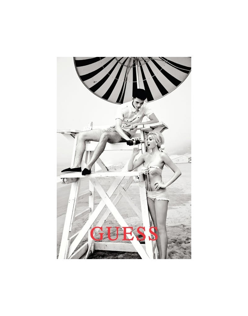 Photographed by Ellen von Unwerth, Silviu Tolu (Allure/Red) returns for another season with Guess. Quite the lady’s man, Silviu charms whether he is serenading his female companions, enjoying a beach side rendezvous or giving out the generous pedicure. / Art Direction by Paul Marciano. Courtesy of – Homotography