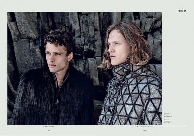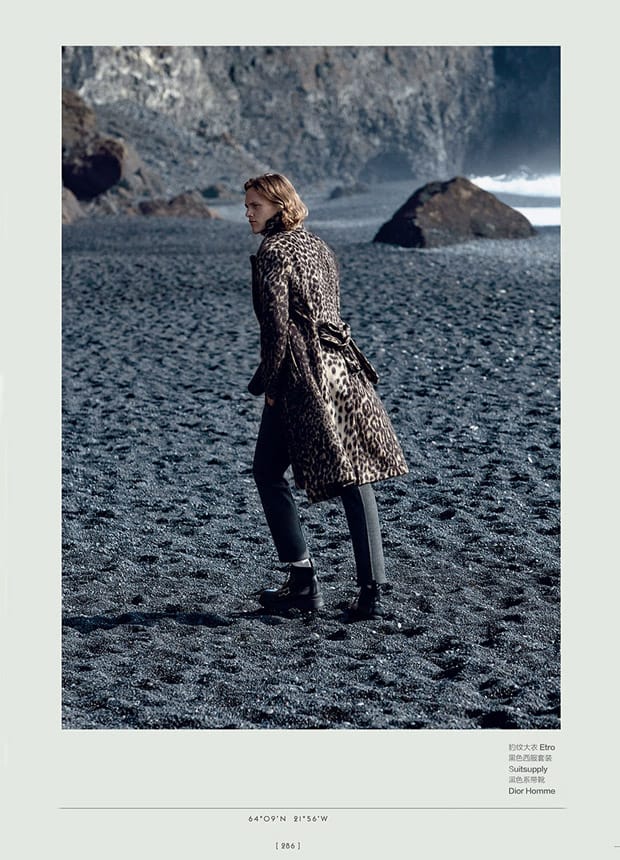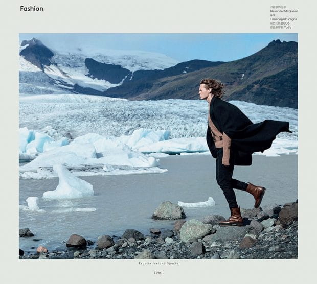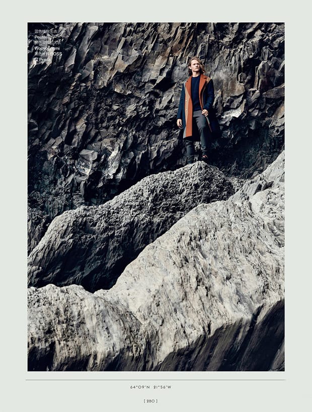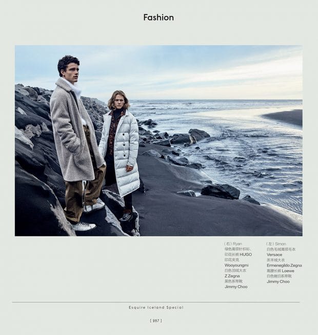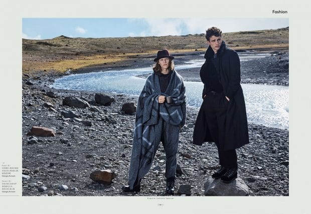 “Supermodel Simon Nessman teams up with Ryan Keating for Iceland special captured for Esquire China‘s latest edition by fashion photographer Yossi Michaeli. In charge of styling was Chen Bo, who for the story selected looks from brands such as Boss, Giorgio Armani, Versace, Gucci, Dior Homme, Etro, and Ermenegildo Zegna among other.” – Malemodelscene.net
