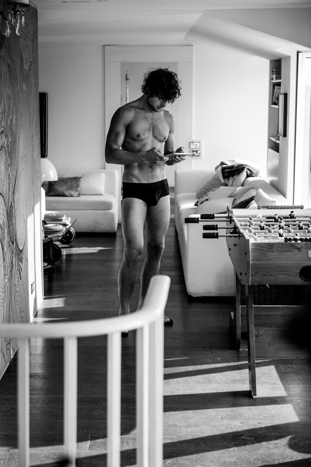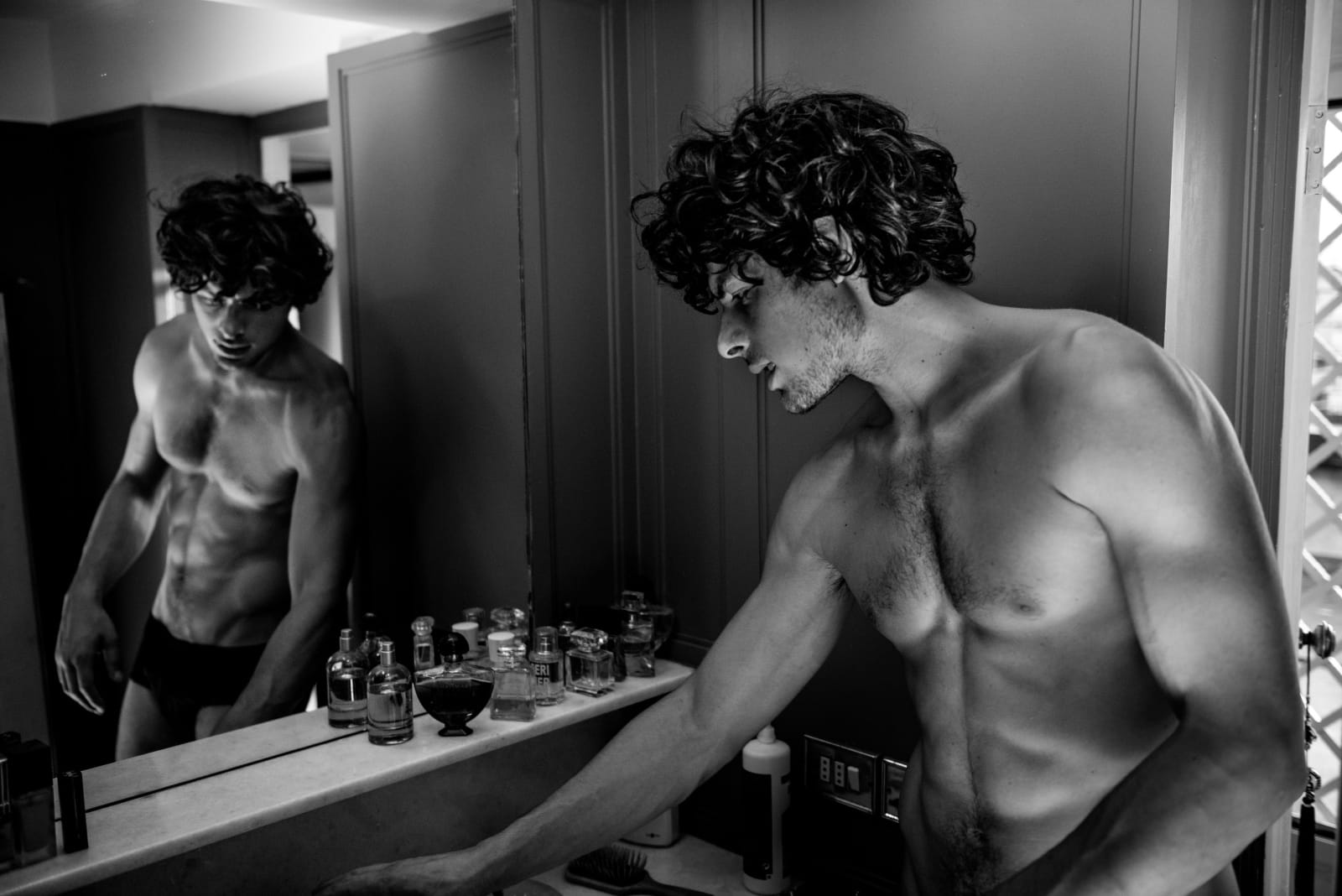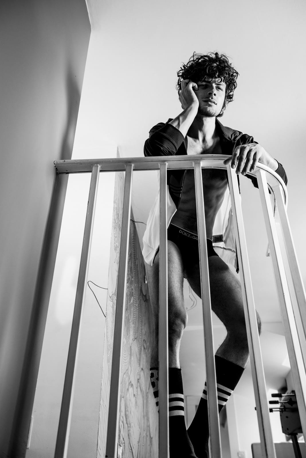 “Italian model Simone Zin at Elite Milano is photographed by Manuel Scrima in a sexy story for c.a.p.74024. Simone is wearing pieces from Tom Rebl, Yezael, Adidas, Dolce&Gabbana, Saint Noir Berlin and Giorgio Armani.” – homotography.blogspot.com