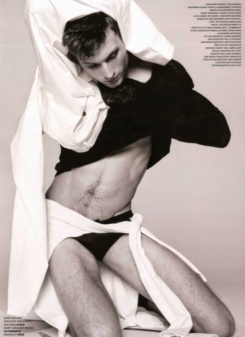 “Jacob Morton, Aiden Andrews, Logan Flatte, Luka Sabbat and Sam Worthen shot by Pierre Debusschere and styled by Tom Van Dorpe, for the Spring/Summer 2015 issue of VMan magazine.” – FY Magazine.es