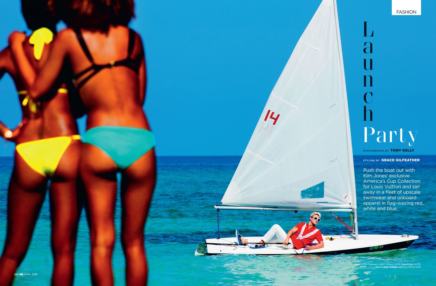 Louis Vuitton’s America’s Cup collection is in good company with model Oliver Stummvoll photographed by Tony Kelly for the British GQ.” – ohlalamag.com