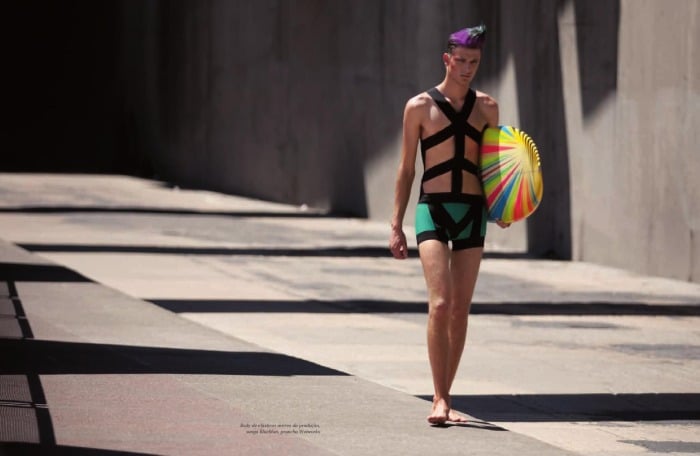 ‘After Vivanco’s Nomad of the Golden Sand, we bring you this colorful editorial from the recent issue #17 of ffw>> mag!. The editorial ‘Sobre Onas’ was photographed by Zee Nunes & Andre Katopodis in Rio de Janeiro, with styling by Pedro Sales.’ – Homotography