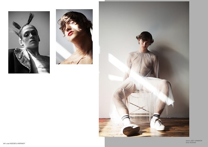 “Noah Boling at DNA and Tay Landau at Next photographed by Brent Chua and styled by Jungle Lin with pieces from Acne Studios, adidas, Dior, Comme des Garçons, Z Zegna and more, in exclusive for Fucking Young Online.