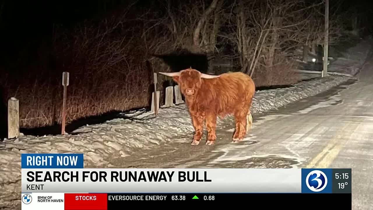 A Scottish Highland Bull On The Loose In Connecticut’s Rural Hill Country.