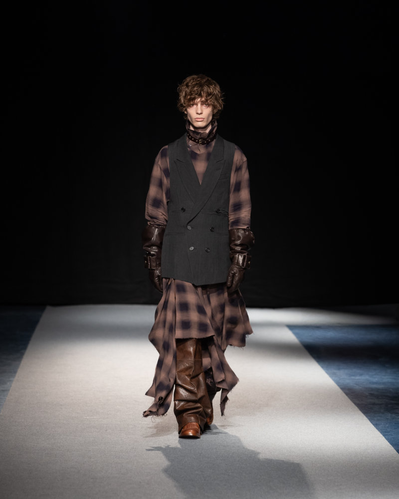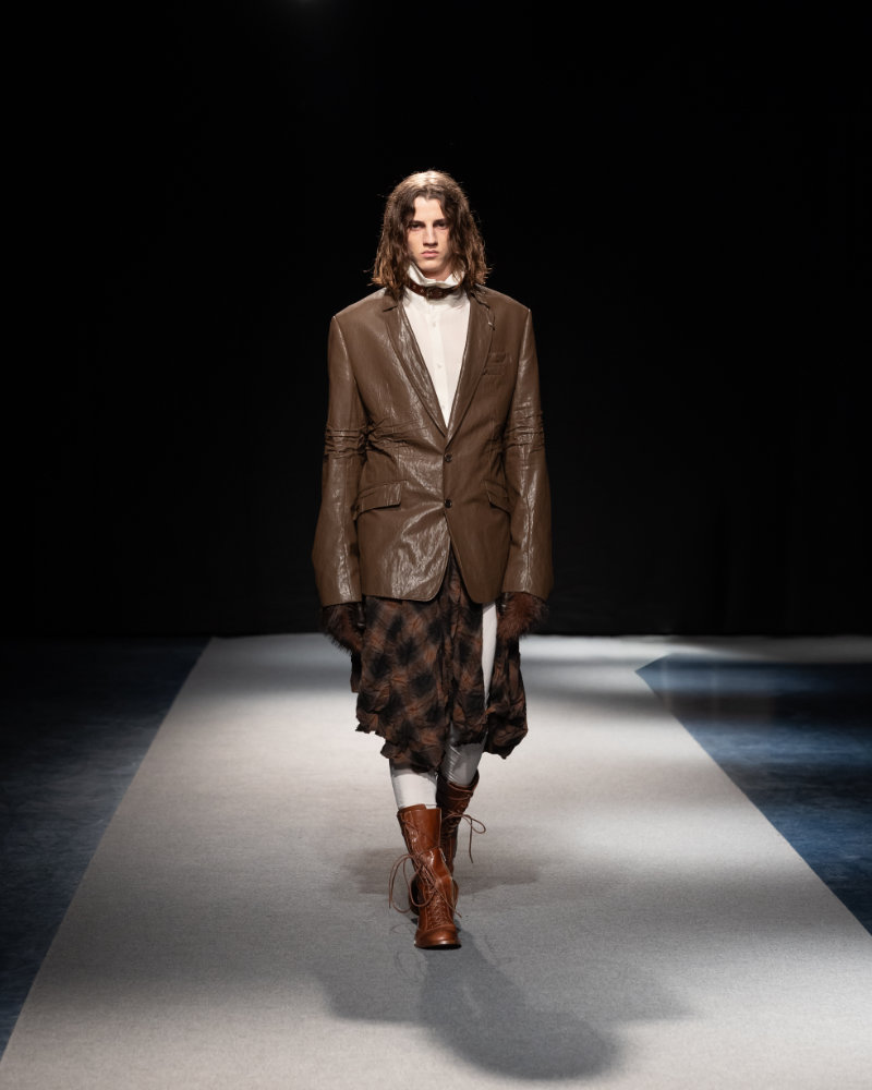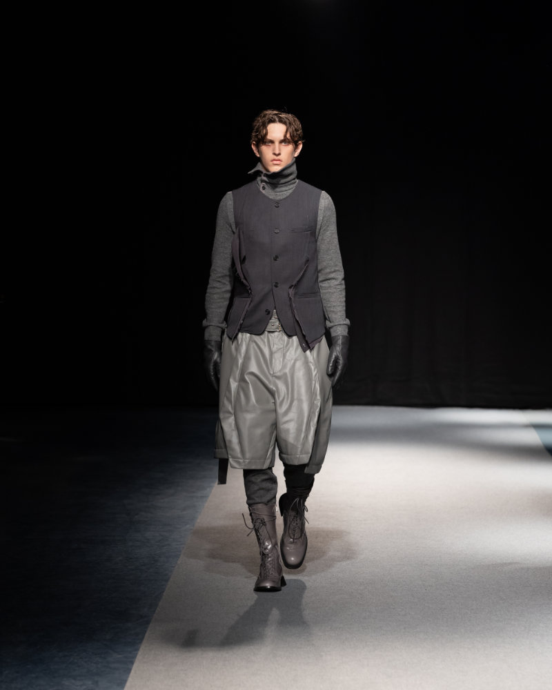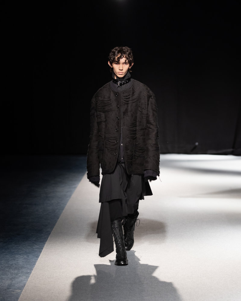 Models moved with a slow, deliberate pace, letting each piece breathe. The whole show read like a meditation on resilience — how things break, reform, and emerge sharper. SONGZIO didn’t just present clothes; they presented a process.