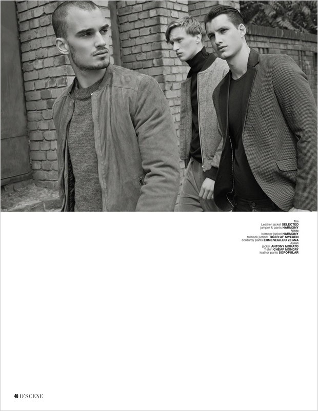 “Fashion photographer Christoph Musiol teams up with stylist Bodo Ernle at Nina Klein for Squad story coming from the pages of our D’SCENE Magazine‘s Winter 2015 Volume II limited edition. Stars of the session are Julian Hennig at Nest Model Management, Nicolai Otta at Kult Model Agency, Nikita at IZAIO Management, and Tim Ruger at Spin Model Management.