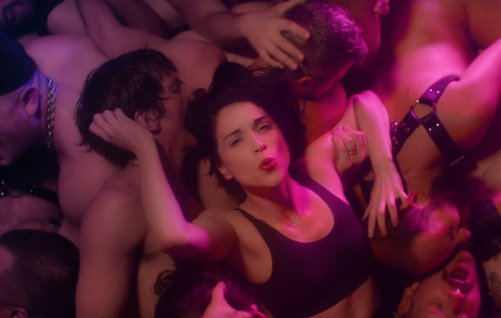 The video piece is edgy and enchanting leaving the viewer hypnotic following singer Annie Clark dancing through crowds of sweat-drenched fellows in a gay club. They lift her up over their heads like a disco goddess offset with impeccable warm lighting and a generous amount of leather in the Zev Deans directed visual.