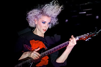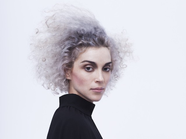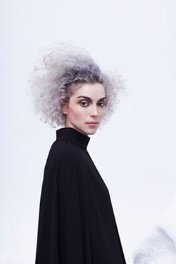Then came the confounding shock of white. On the cover of 2014’s St. Vincent, which celebrates its fifth anniversary this weekend, Clark sits on a throne, commanding. Her hair, once curly and brown, is now gray fading into white. Her gaze is stark. She might be an alien ruler come to Earth. She’s definitely the one in charge.