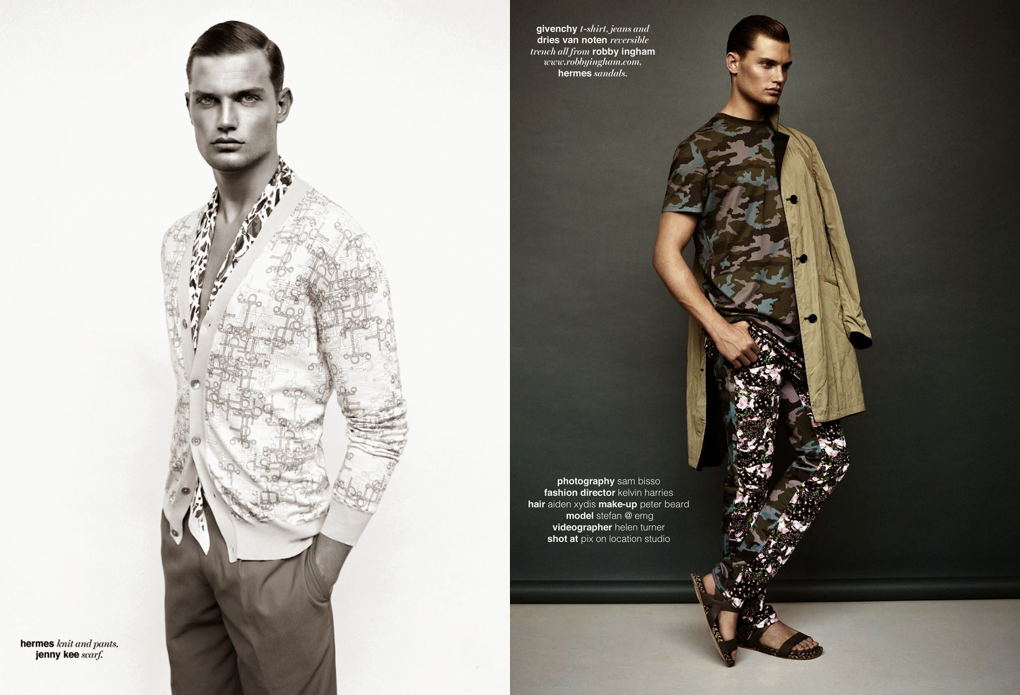 STEFAN POLLMANN CONNECTS WITH PHOTOGRAPHER SAM BISSO, APPEARING IN NEW MAGAZINE MR&MRS TOM. FOR THE OCCASION, STEFAN TACKLES SUMMER PRINTS WITH THE HELP OF STYLIST KELVIN HARRIES. FROM BURBERRY PRORSUM’S POLKA DOTS TO RAF SIMONS’ INTRICATE FLORAL PRINTS, STEFAN IS EASILY A STYLISH VISION.” – The Fashionisto
