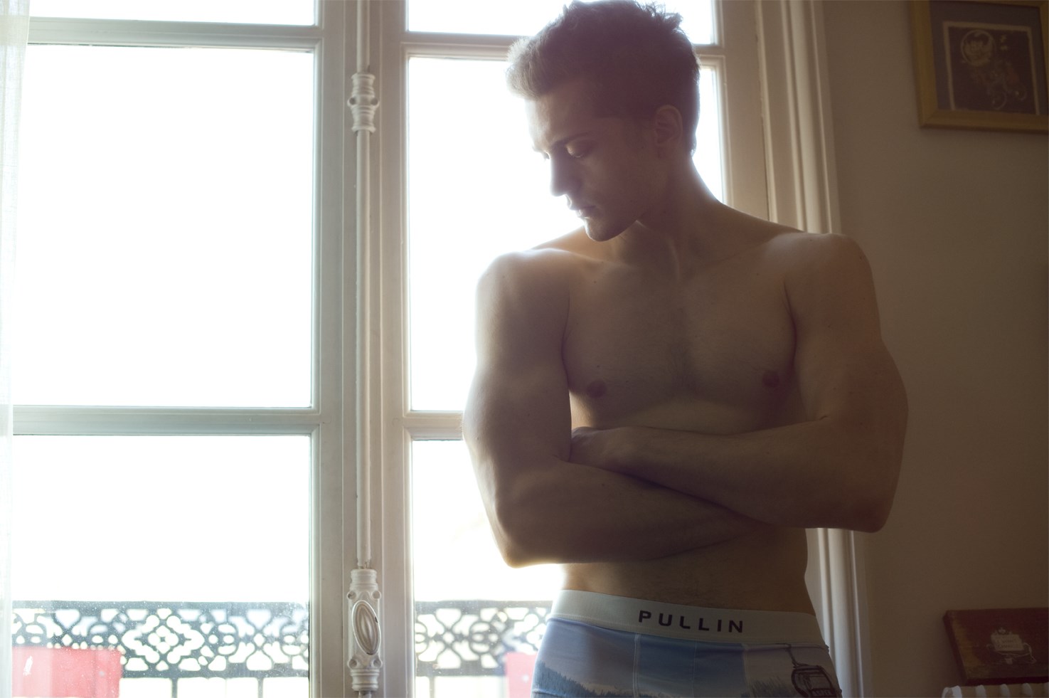 “French model Stéphane Vanier at City Models Paris is photographed by Nicolas Aristidou in a pair of Pull-in underwear for Un Homme Un Slip.” – Homotography.com