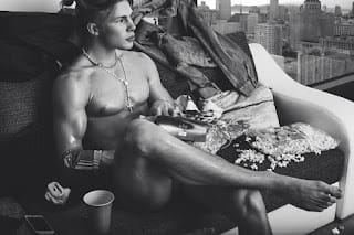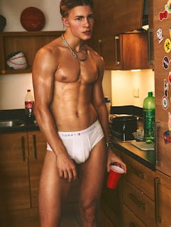 “The handsome Steve Swish at IMG Models teams up with fashion photographer Christian Oita for the pages of VMAN Magazine‘s Spring Summer 2019 edition. In charge of styling was Tony Cook, who for the session selected briefs, boxers and hoodies from Tommy Hilfiger.” – Malemodelscene.net