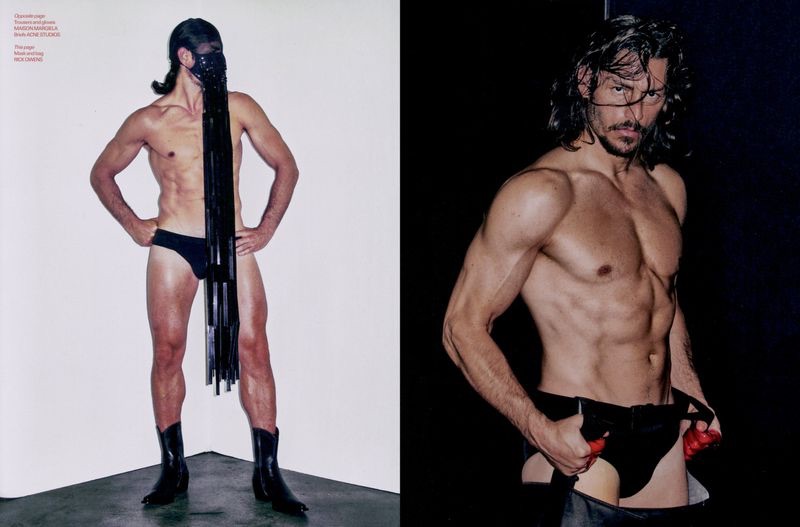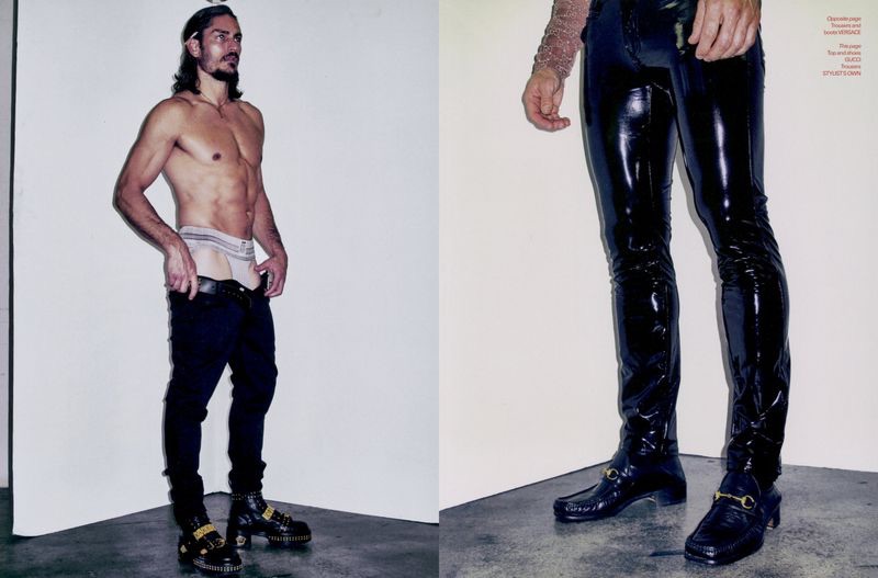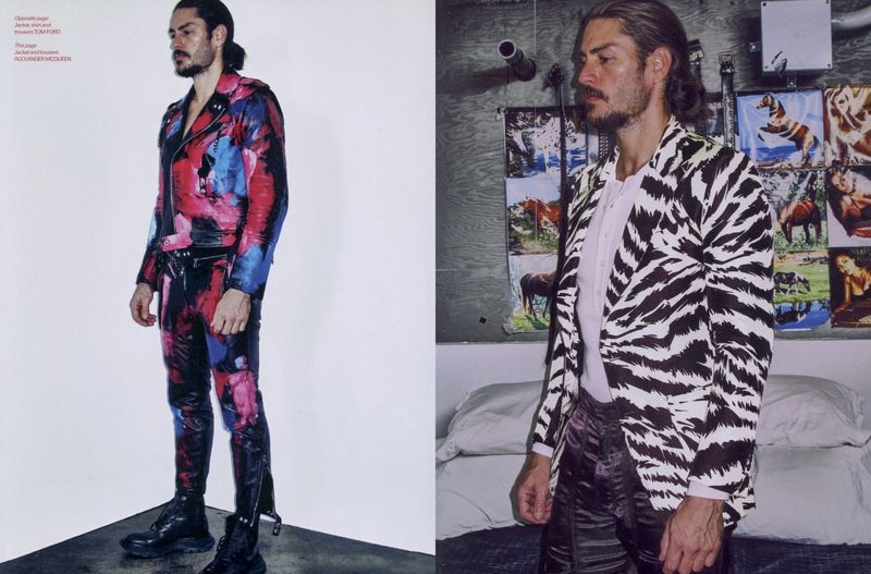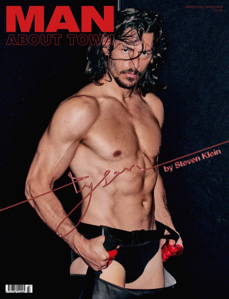 “Tyson Ballou rocks eccentric style for Man About Town. The American model connects with photographer Steven Klein for the stripped down shoot. Covering Man About Town’s winter 2018-spring 2019 issue, Tyson is styled by Matthew Ellenberger. Sporting varied statement pieces, Tyson wears everything from leather pants and denim cut-offs to a leopard print coat. Ellenberger curates a wardrobe that spotlights brands like Calvin Klein, Acne Studios, and Dsquared2.” – TheFashionisto.com