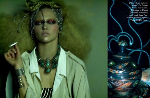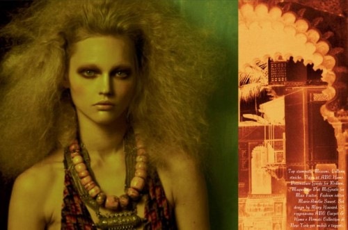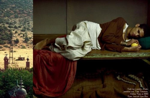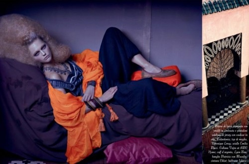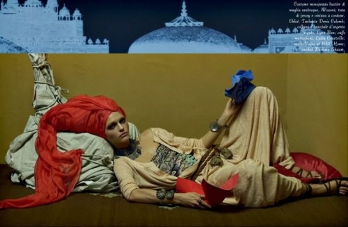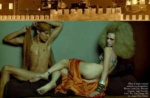 Steven Meisel takes us on a sensual ‘Moroccan Holiday’ with Sasha Pivovarova in the May 2009 issue of Vogue Italia. We have recently seen similar oriental influences in the Supreme F/W 09 Show Package by Paul Rowland and in The Harem by Anthony Gayton. But Meisel takes the idea to a whole other level. I am simply engulfed by the beauty and image creativity of this shoot. I love how he composed them together. All hail Steven Meisel. Courtesy of – Homotography