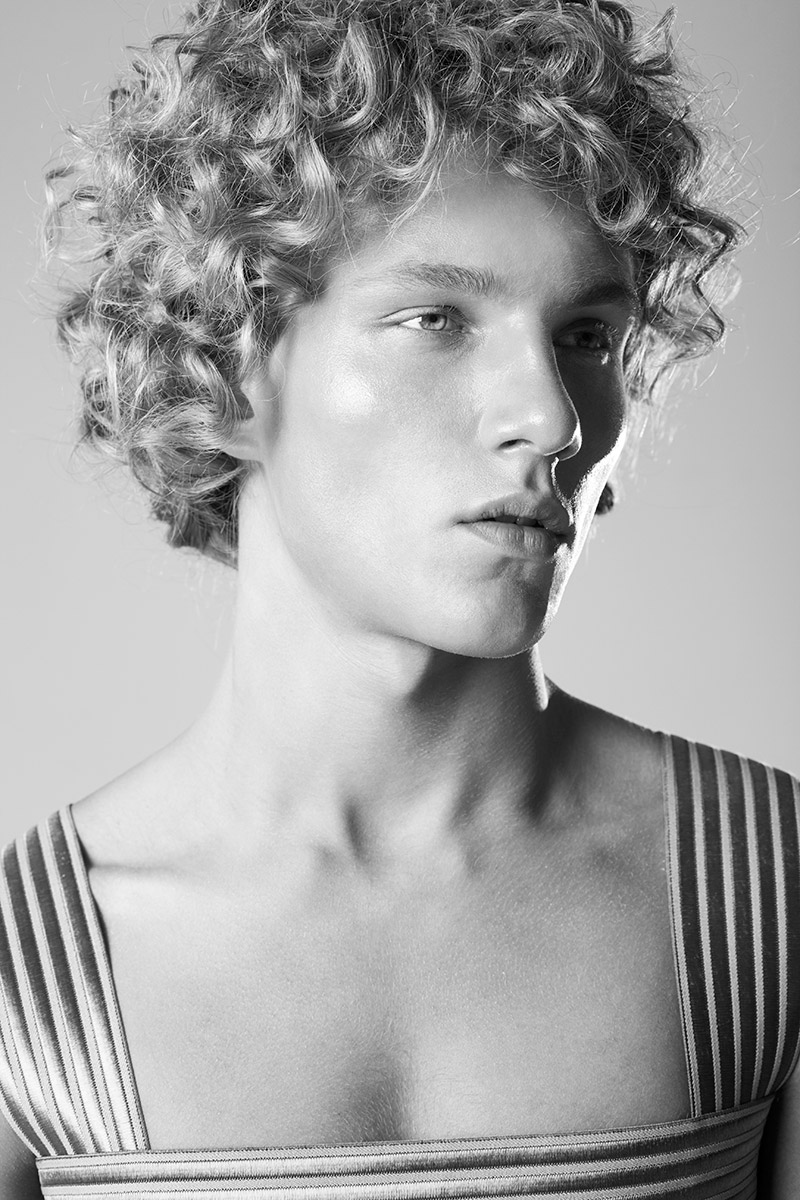 “Stijn at Elite Amsterdam photographed by Lobke Leijser and styled by Julia Müller with pieces from Barbara van Langedijk, Roel Schagen, Falke, Reinder Smith, Sleeveless asymmetric vest Reinder Smith, underpants Item M6, Schueller de Waal and more, in exclusive for Fucking Young! Online.