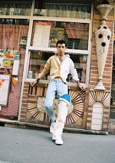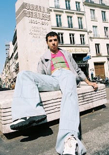 Inspired by the work of the late Australian Indigenous artist Gordon Bennett, this collection explores the artist’s methods of ‘Quoting and Sampling’ which creates a new vocabulary and portal for audiences to view and understand his work. In his hybrid-like appropriations, Bennet creates his own language which enables him to open up and re-define stereotypes and bias. Taking the framework of traditional collections, Strateas Carlucci breakdown and re-create new hybrid garments of Men’s and Women’s wardrobe staples, melding denim with tailoring, coats with blazers, dresses with shirts and clashing fabric textures and patterns. Like Bennett’s work, this enables a new perspective for the audience to question the role of these items. Remaining true to the brands DNA, gender fluidity is at the core of this collection. Toying with masculine and feminine forms and fabrications, the hero of the collection remains strong silhouettes and sharp tailoring, with oversized and deconstructed shapes and voluminous bottoms. – from Strateas Carlucci.” – Malemodelscene.net