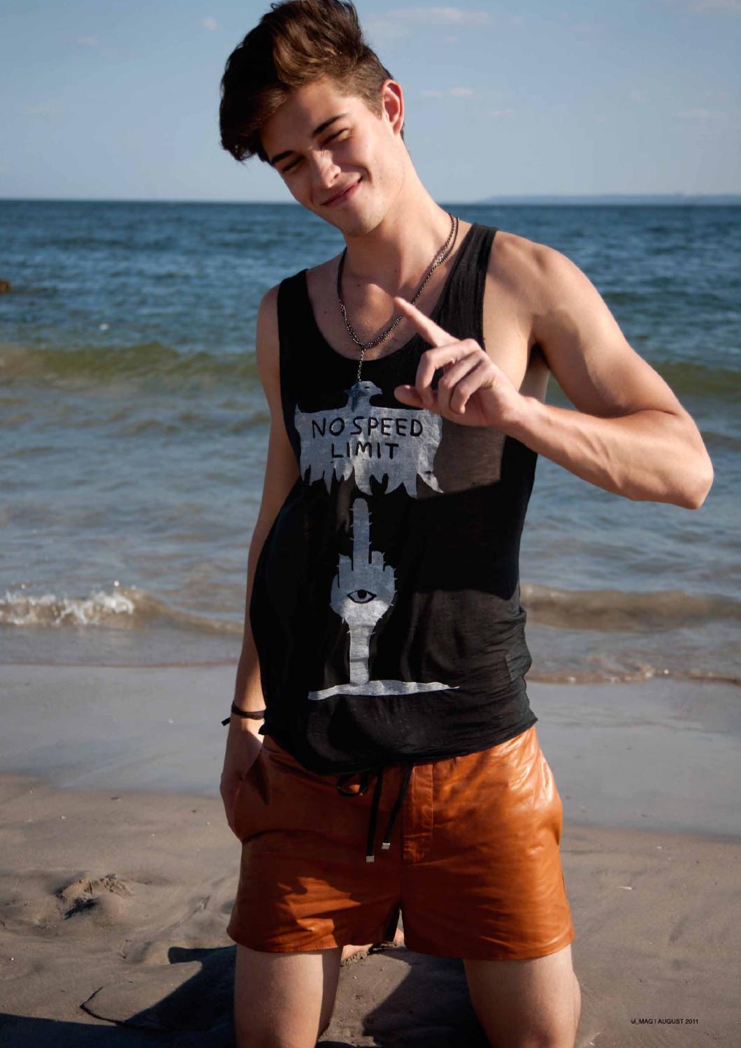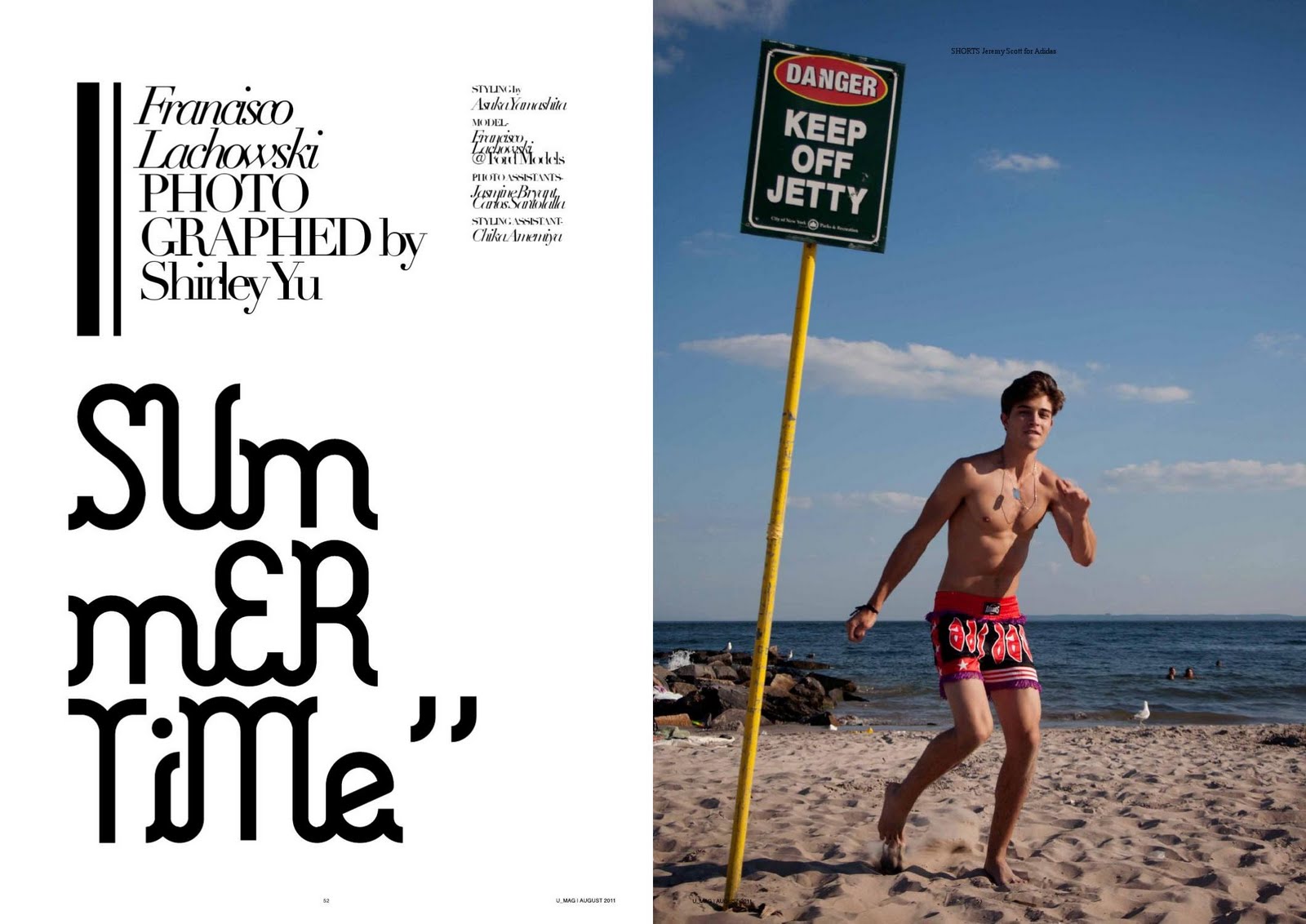 The ever-charismatic Francisco Lachowski frolics on the beach for this sun- and fun-filled shoot for Brazilian magazine, U+Mag, shot by teen photographer Shirley Yu and styled by Asuka Yamashita in Jeremy Scott for Adidas and Armani Exchange, to name two. Courtesy of – hommemodel.blogspot.com