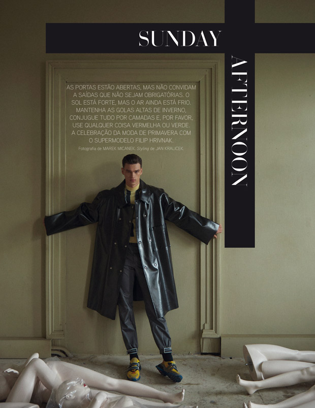“Top model Filip Hrivnak teams up with fashion photographer Marek Micanek for Sunday Afternoon story coming from the pages of GQ Portugal‘s April 2018 edition…