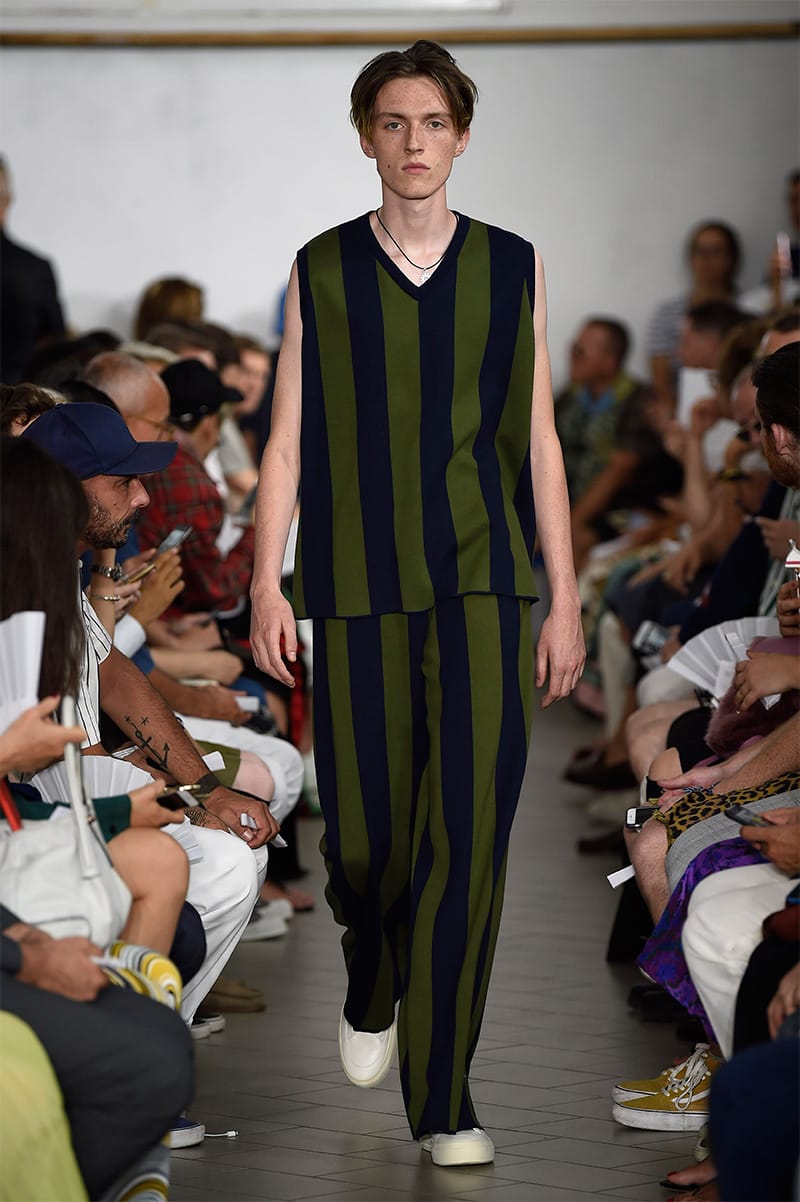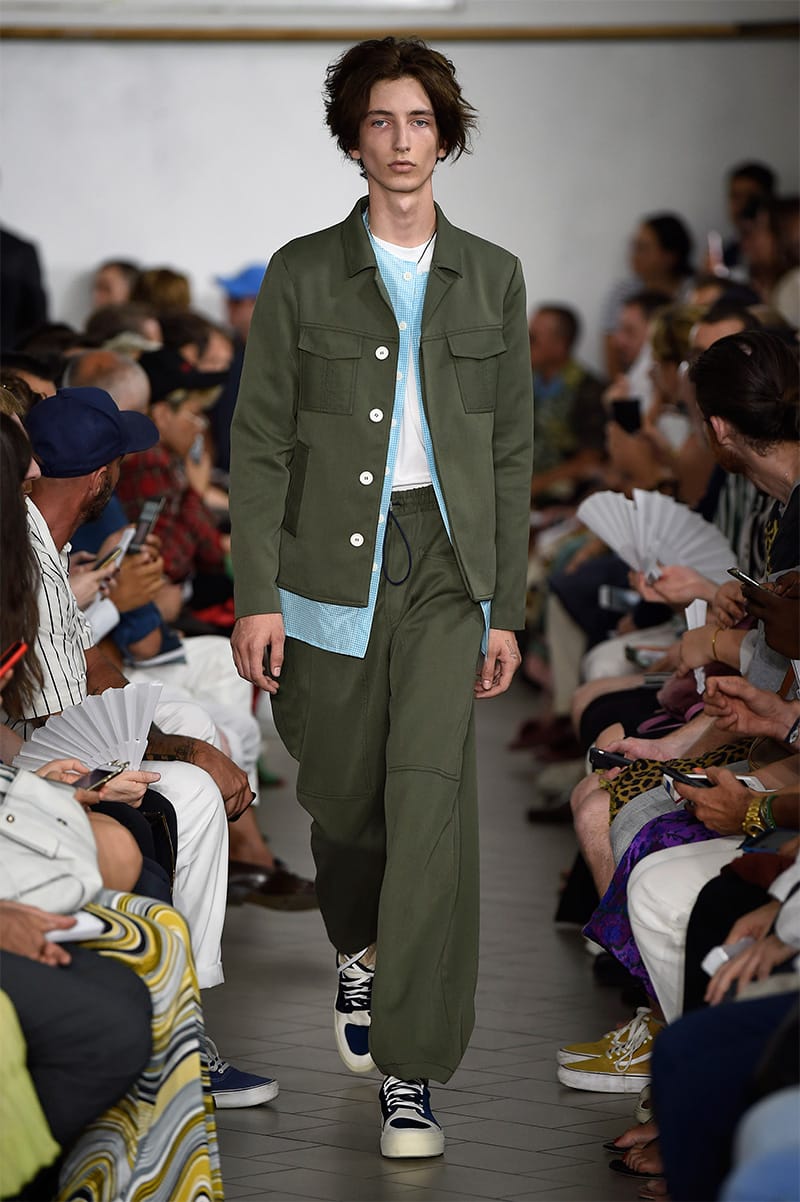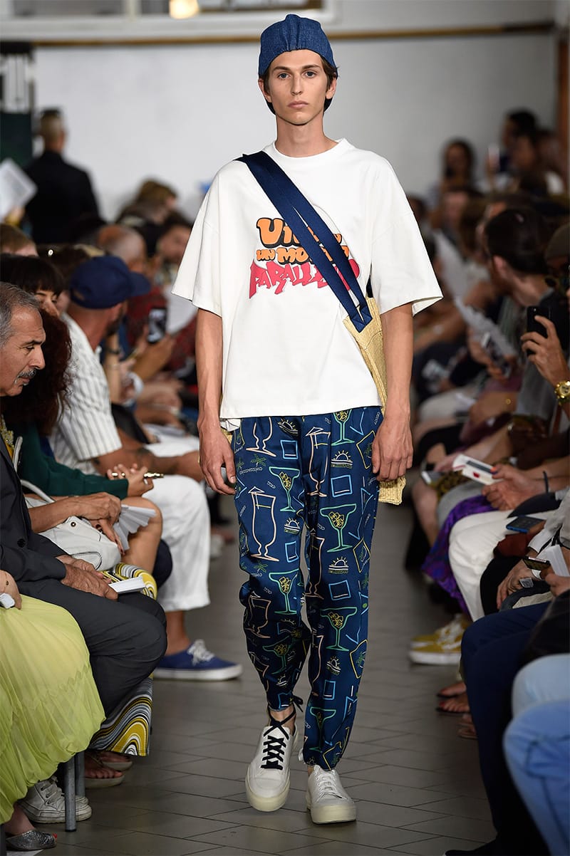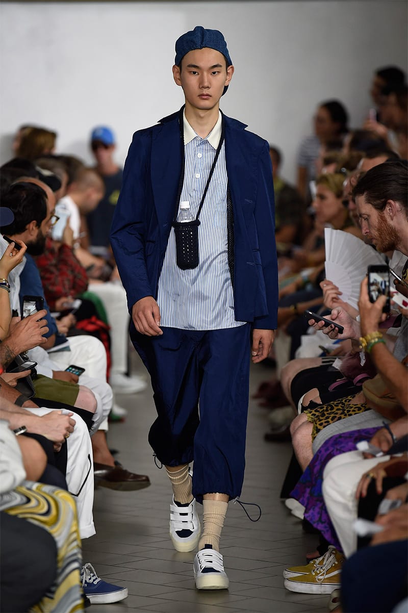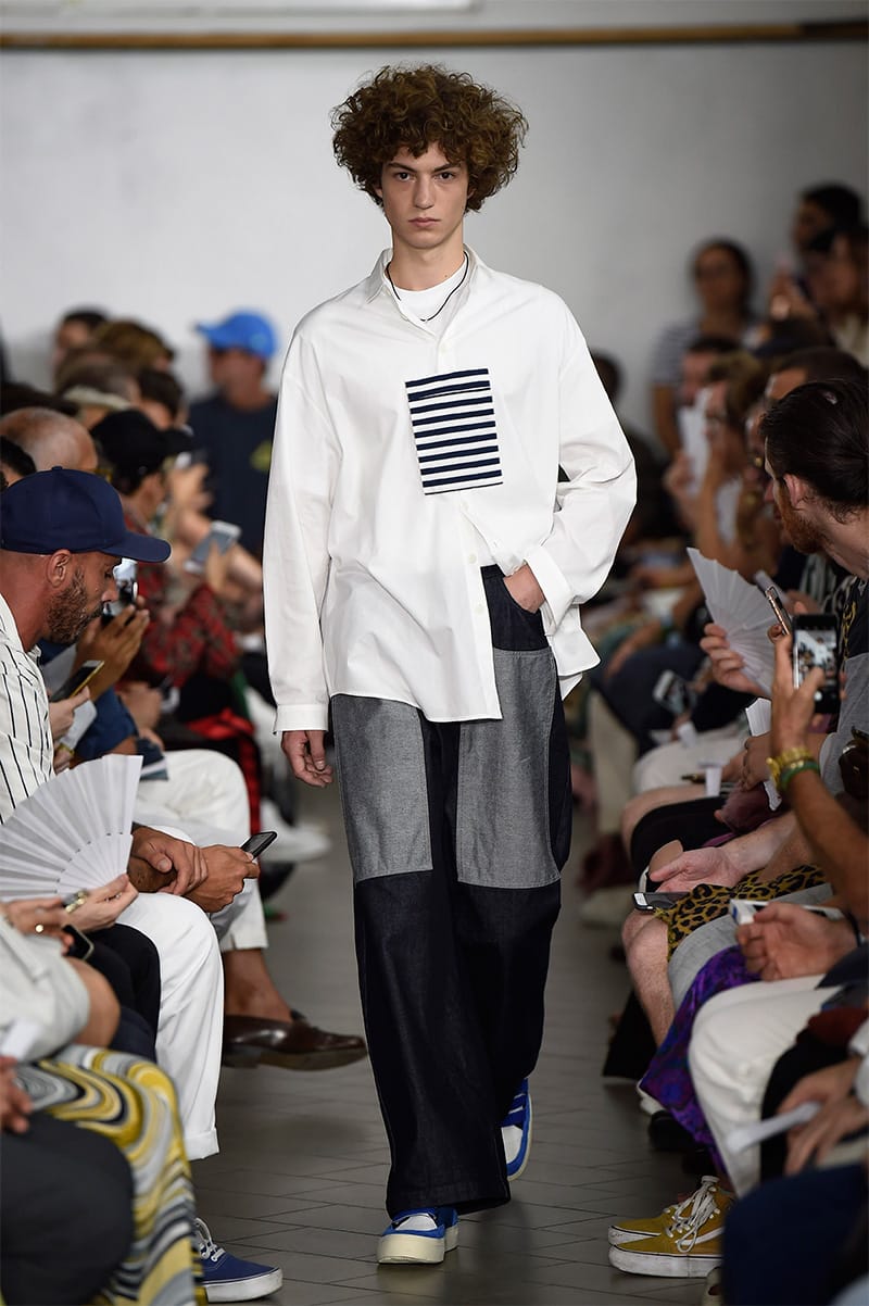 “Loris Messina and Simone Rizzo – the creative duo behind SUNNEI – set out for Spring/Summer 2018 to celebrate youth, the Italian way of living, irony and signature attention to details. The collection is SUNNEI’s take on everyday life and exudes a sense of ease, recalling the last day of school. A hallucination of the past, this familiar feeling surfaces inside the halls of a “liceo artistico,” a high school for the arts, filled with the desire to create. This flashback collides with the new Milano – far from touristy sights and seen through the brand’s closeness to collaborators and long-time friends from various disciplines.” – FY Magazine.es