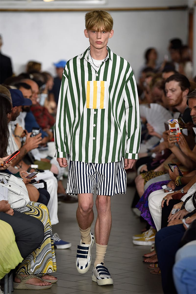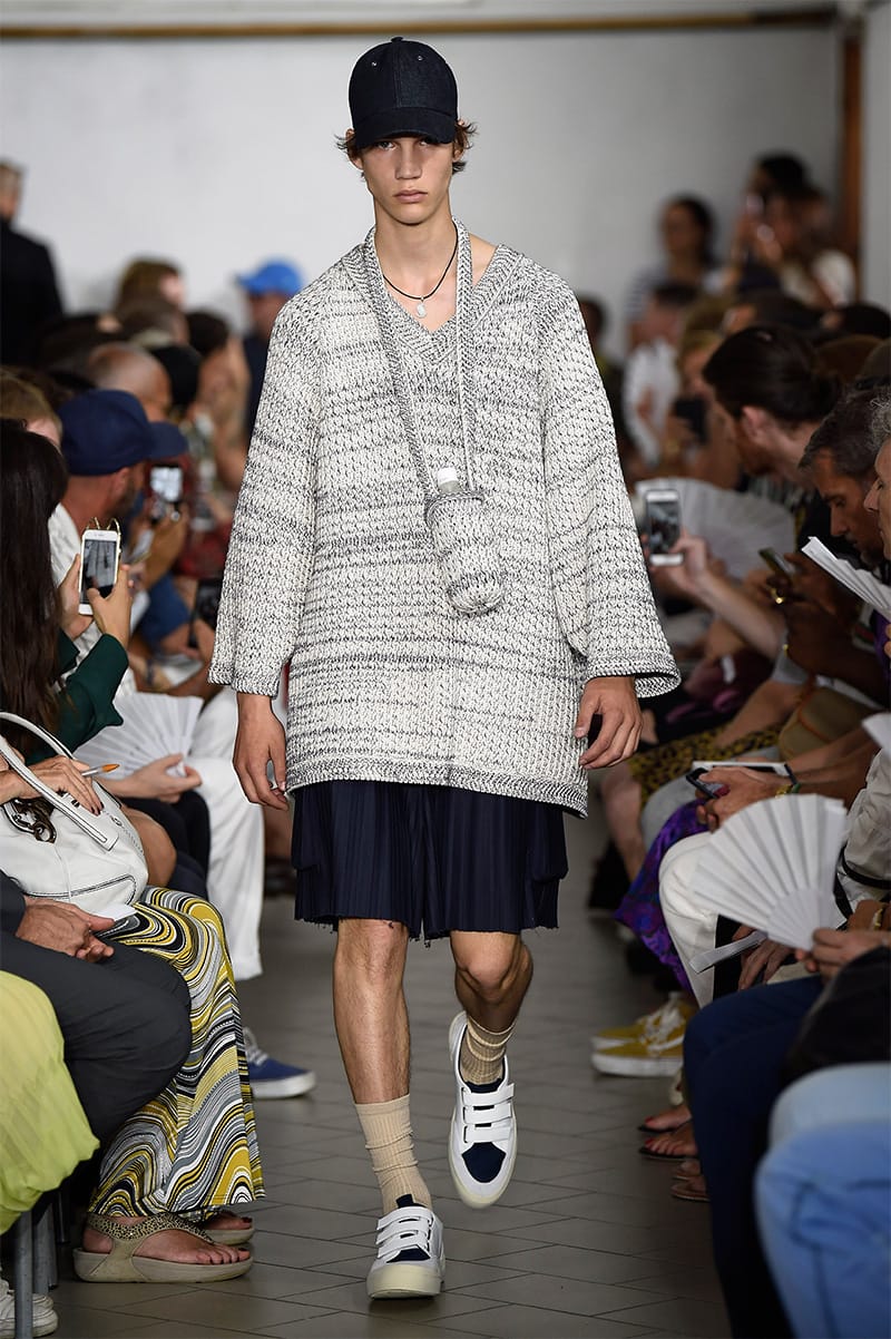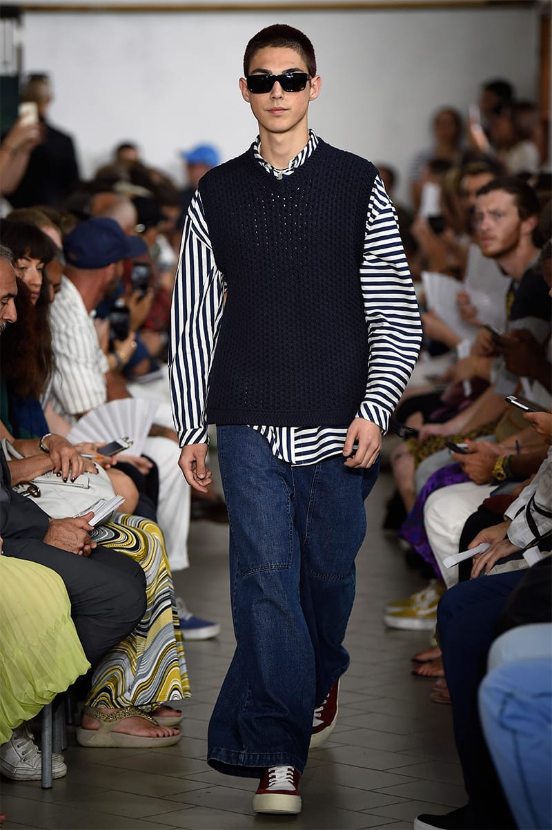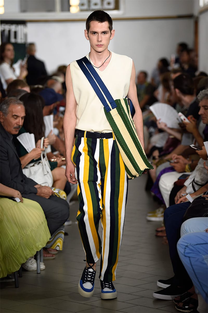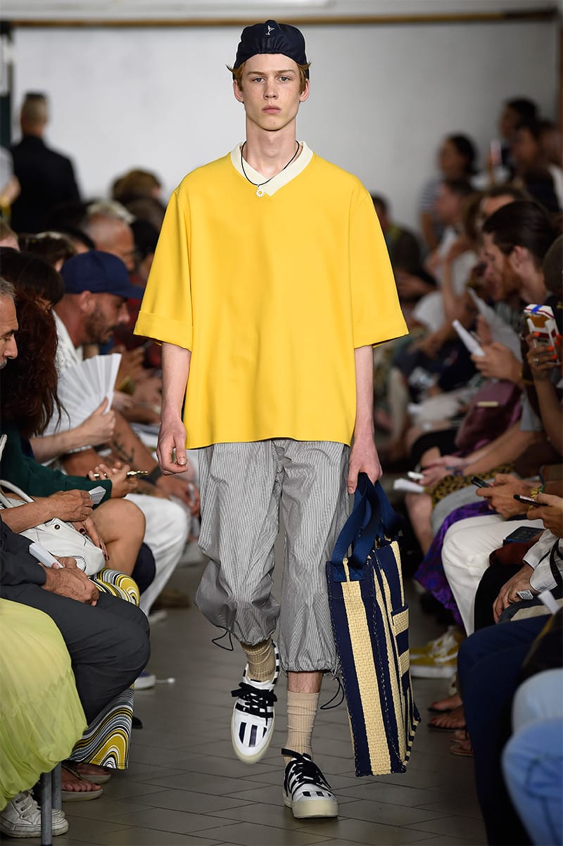 “Loris Messina and Simone Rizzo – the creative duo behind SUNNEI – set out for Spring/Summer 2018 to celebrate youth, the Italian way of living, irony and signature attention to details. The collection is SUNNEI’s take on everyday life and exudes a sense of ease, recalling the last day of school. A hallucination of the past, this familiar feeling surfaces inside the halls of a “liceo artistico,” a high school for the arts, filled with the desire to create. This flashback collides with the new Milano – far from touristy sights and seen through the brand’s closeness to collaborators and long-time friends from various disciplines.” – FY Magazine.es
