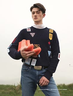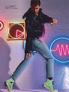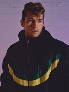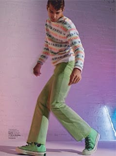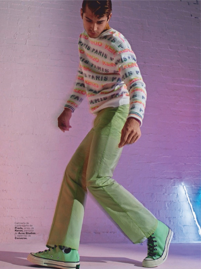 “Ben Bowers rocks a pompadour for Esquire España. The American model makes a bold statement in oversized fashions. Javi Lopez photographs Ben, while Alvaro de Juan oversees styling. De Juan curates a selection, which includes brands such as Cerruti 1881, Prada, and Valentino. Front and center, Ben sports logo-adorned fashions, florescent tones, colored denim, and more.” – TheFashionisto.com
