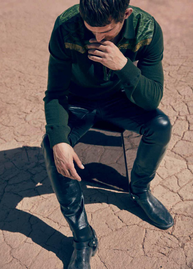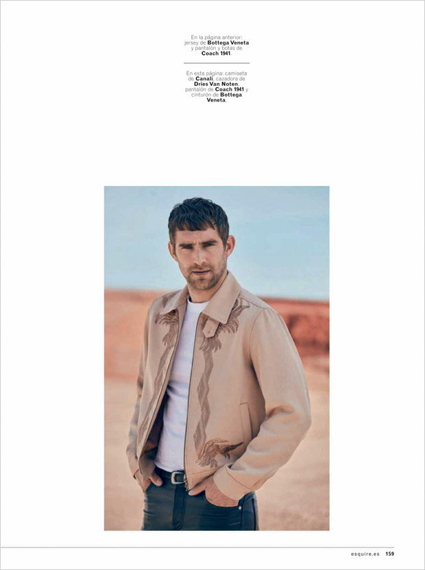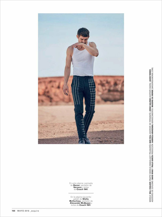 “Supermodel Will Chalker stars in Aires del Oeste story captured by fashion photographer Pablo Saez for Esquire Spain‘s May 2018 edition. In charge of styling was Alvaro de Juan, who for the session selected looks from the likes of Calvin Klein 205W39NYC, Versace, Kenzo, Stella McCartney, Bottega Veneta, Coach 1941, and Alexander McQueen among other. Grooming is work of Daniel Rull.” – Malemodelscene.net