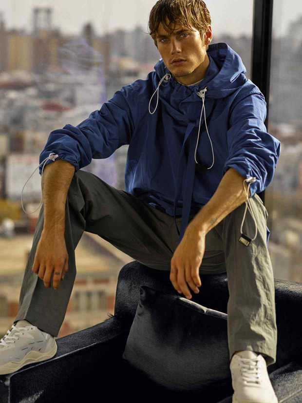 For the story Neels is wearing selected pieces from top brands such as Calvin Klein, Ermenegildo Zegna, Fendi, Gucci, Hermes, Isabel Marant, Lanvin, Louis Vuitton, O’Neill, Paragon Sports, Prada, Saturdays NYC, Tom Ford, and Valentino.” – Malemodelscene.net