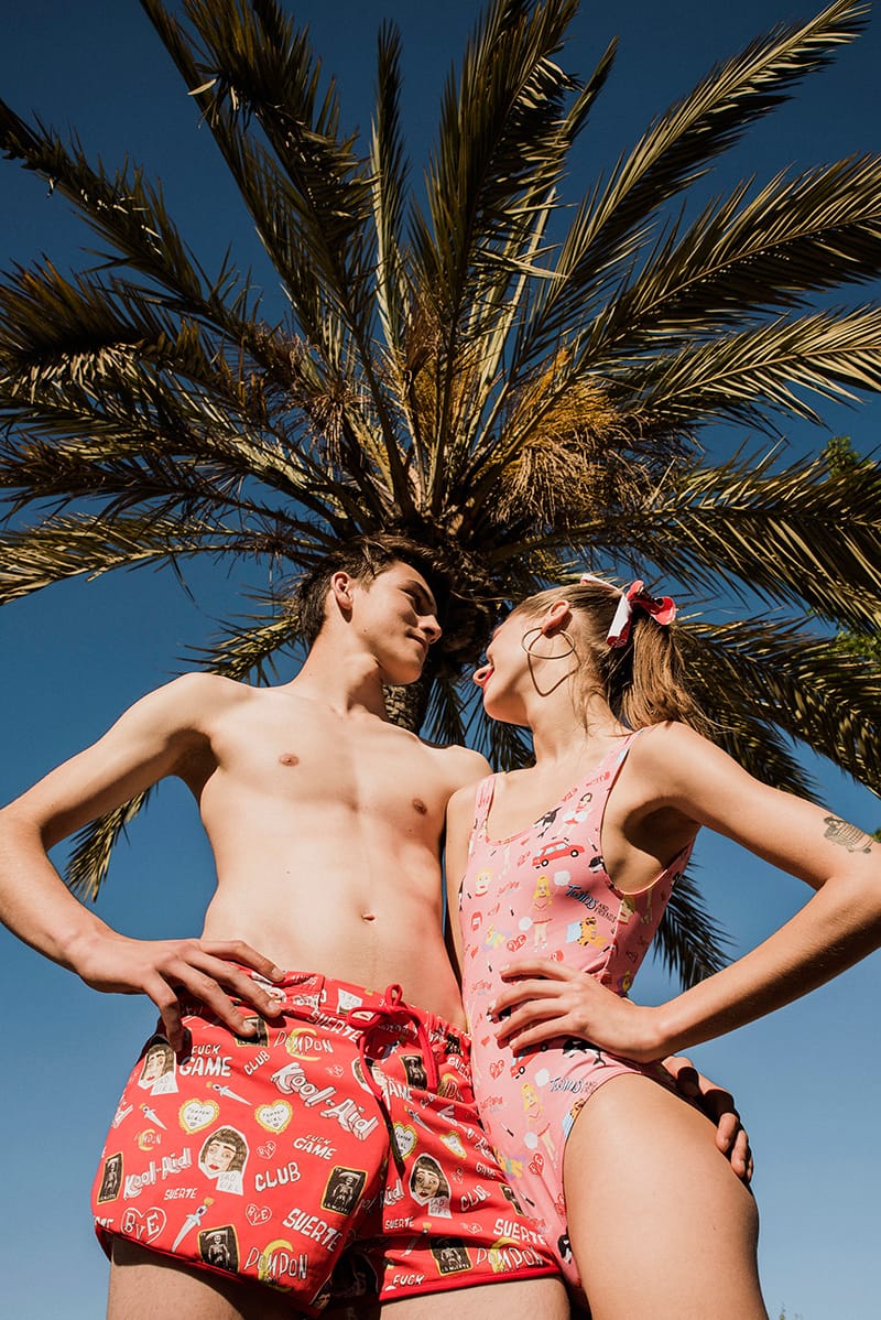 “Rasa Valentino & Eder Apraiz at Uno Models captured by César Segarra and styled by Olga Gil Ventura with pieces from the last capsule collection from Krizia Robustella and illustrator Susana López for this Summer entitled “Sweet Pompons High Club”.