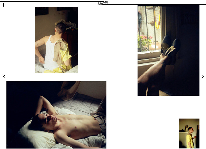 Sylvester’s Big Day–Priscil­las’ new­comer Sylvester Terzini stars in a new edi­to­r­ial for the fourth issue of Razou, pho­tographed by Samuel Hodge. Tak­ing the pomp and cir­cum­stance out of fash­ion, Hodge cap­tures a real­is­tic day, fol­low­ing Sylvester as styled by James RN Campbell. Courtesy of – thefashionisto.com