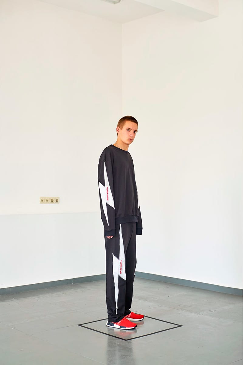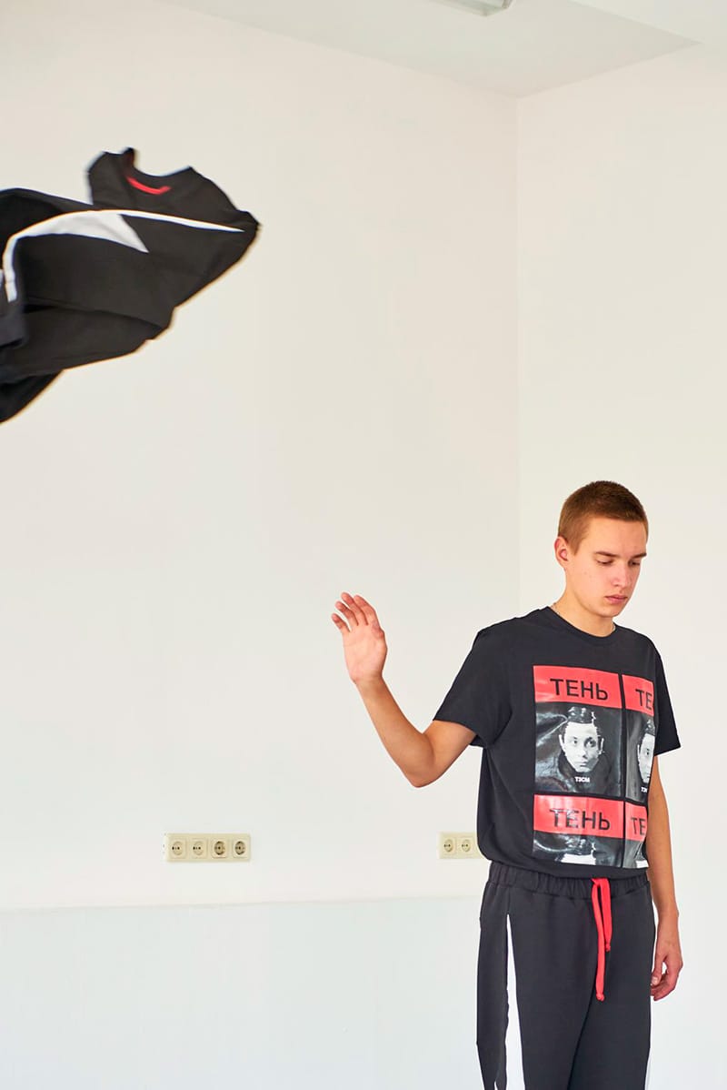 “T3CM‘s collection was inspired by the NSK, the Slovenian art collective, as well as by a Soviet film The Shadow, which is where they borrowed the tagline for the collection: ‘Know your place, Shadow’.