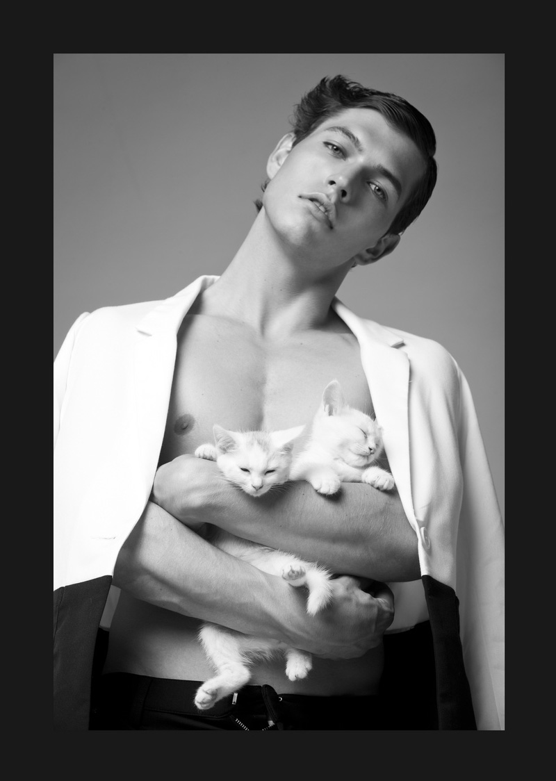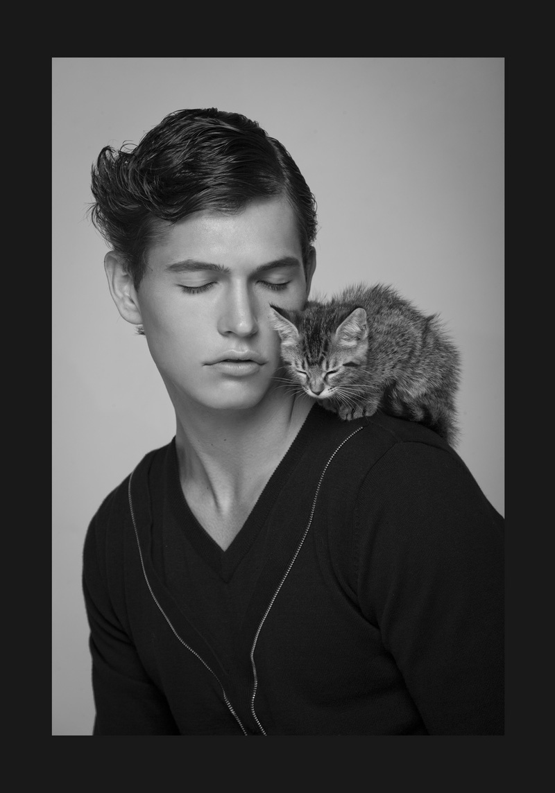 Everybody Wants to be a C-A-T–MM Model Management up and comer Tadas stars in an infectious new story by photographer Olivier Yoan (BX Advertisement). Connecting with stylist Jackie Manchit, Yoan captures Tadas in a black & white series that features accessible fashions from Zara, H&M and Paul Black, combined with the prowess of a feline or two. / Grooming by TiffStudio. Courtesy of – thefashionisto.com