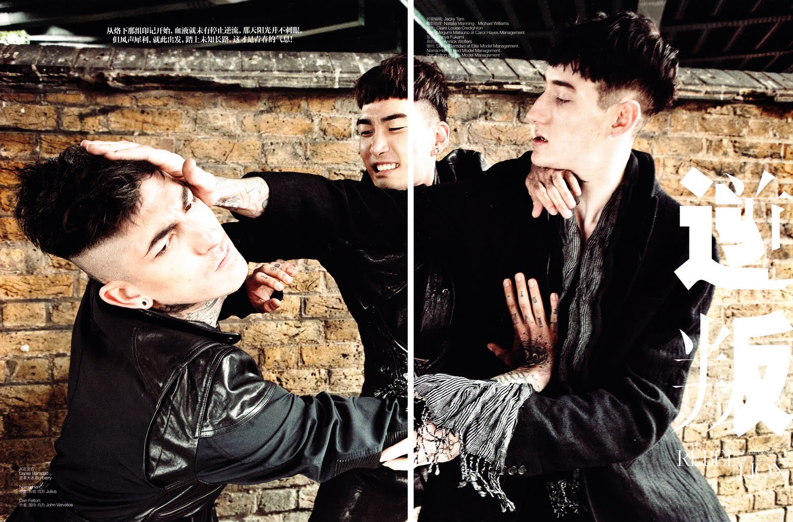 EDITORIAL: Rebellion GQ Style China #2 – Fall / Winter 2011 Models Daniel Bamdad, Noma Han, and Dan Felton Ph Luc Coiffait St Grant Pearce Daniel Bamdad, Noma Han and Dan Felton don leather and studs…