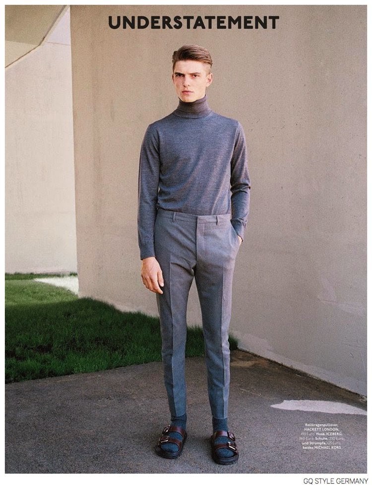 Understatement-Photographed by Bruna Kazinoti for the fall-winter 2014 edition of GQ Style Germany, models Dominik Bauer and Guerrino Santulliana play blank canvases for a fall wardrobe of mensw…