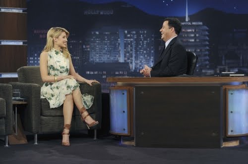 Actress Dianna Agron , best known for her role in Glee, chats with host Jimmy Kimmel on his weekly night show…